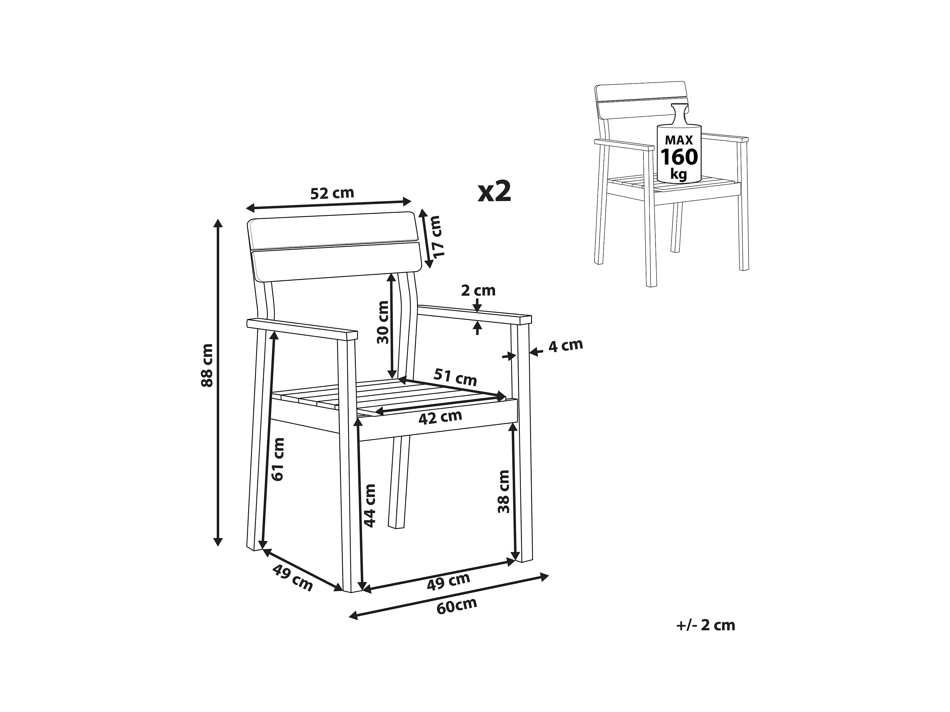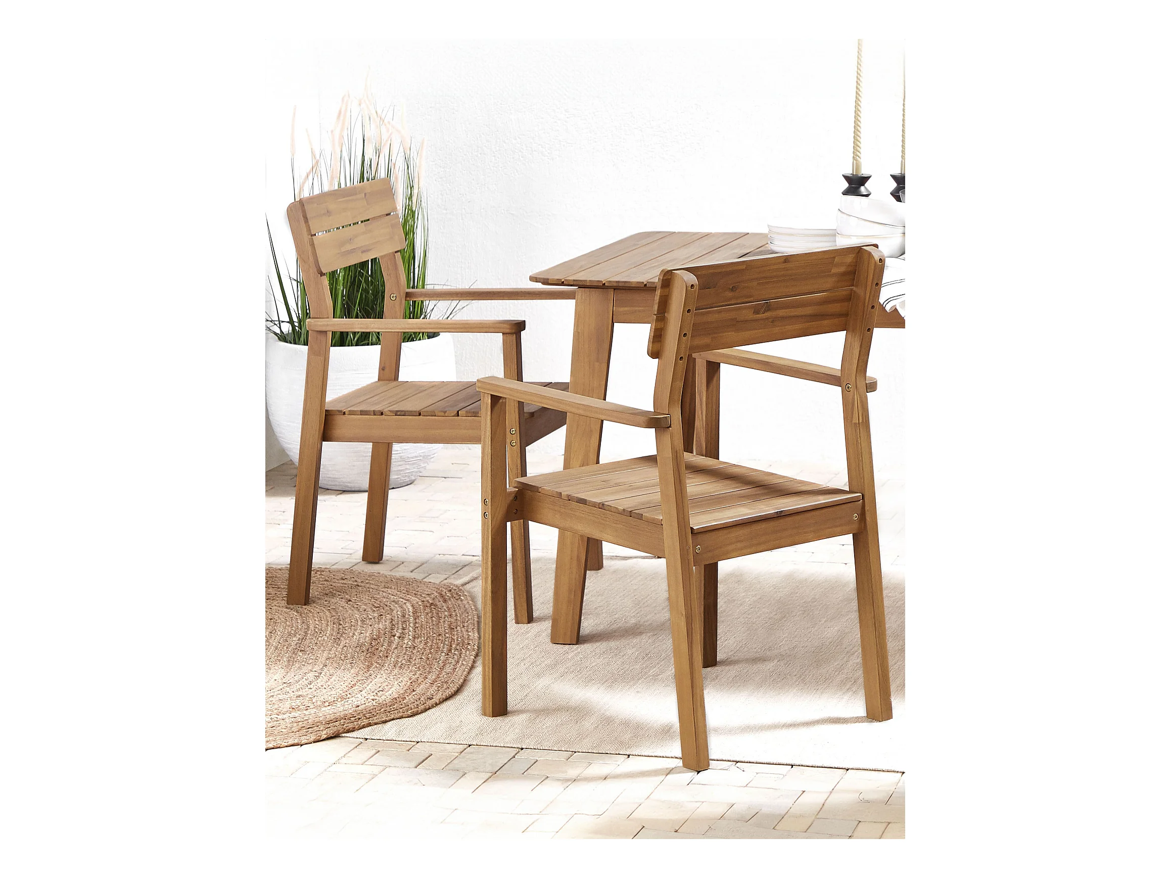 Gartenstühle Akazienholz hellbraun 2er Set mit Armlehnen Fornelli