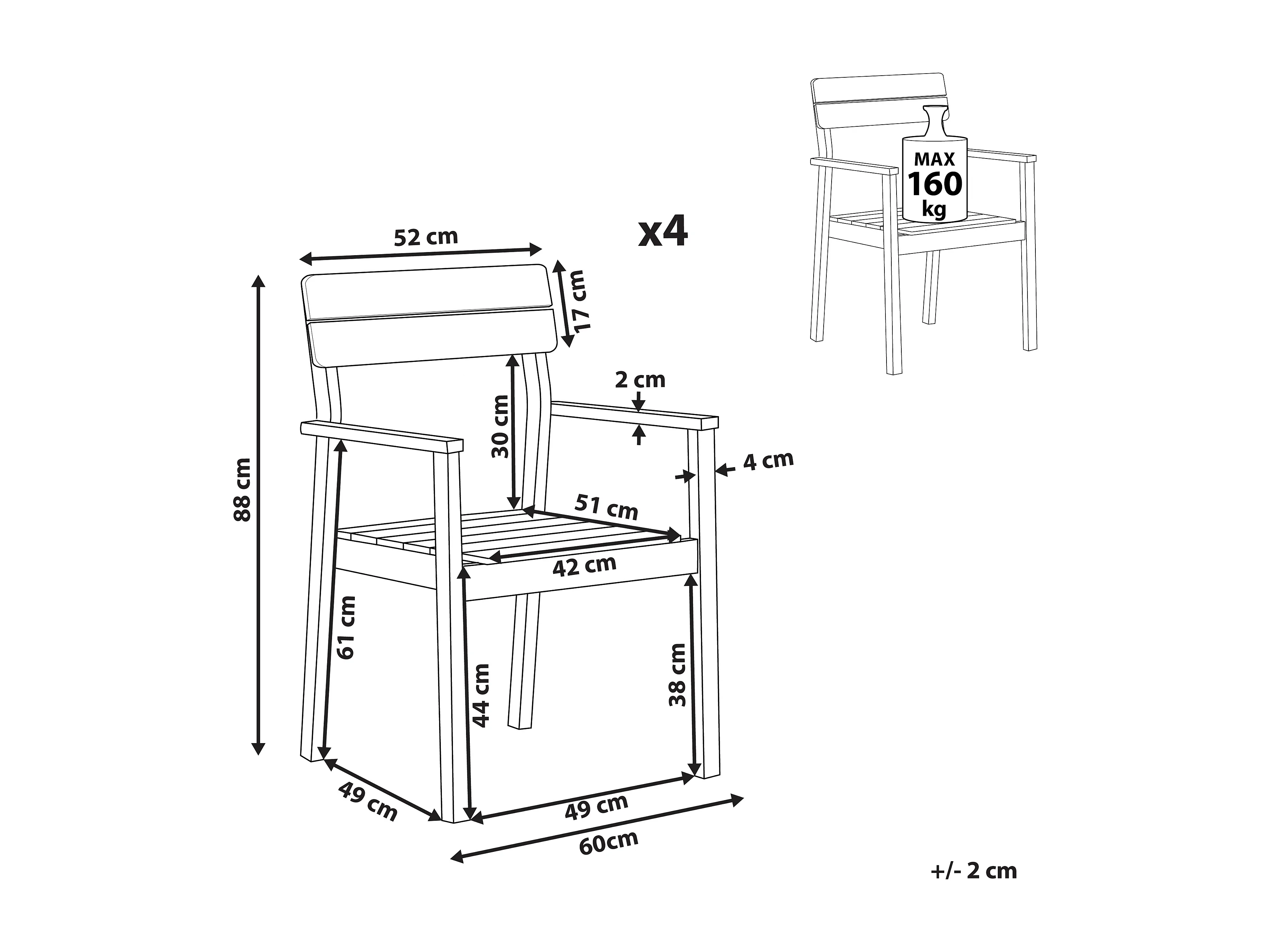 Gartenstühle Akazienholz hellbraun 4er Set mit Armlehnen Fornelli