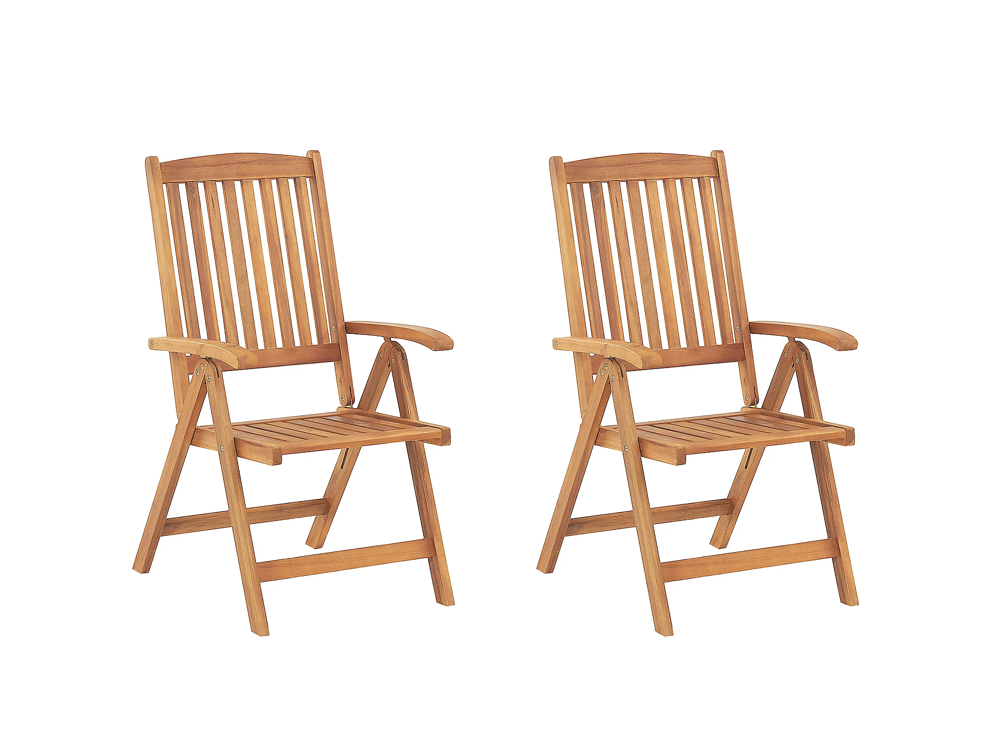 Gartenstuhl 2er Set hellbraun Akazienholz verstellbar klappbar Java