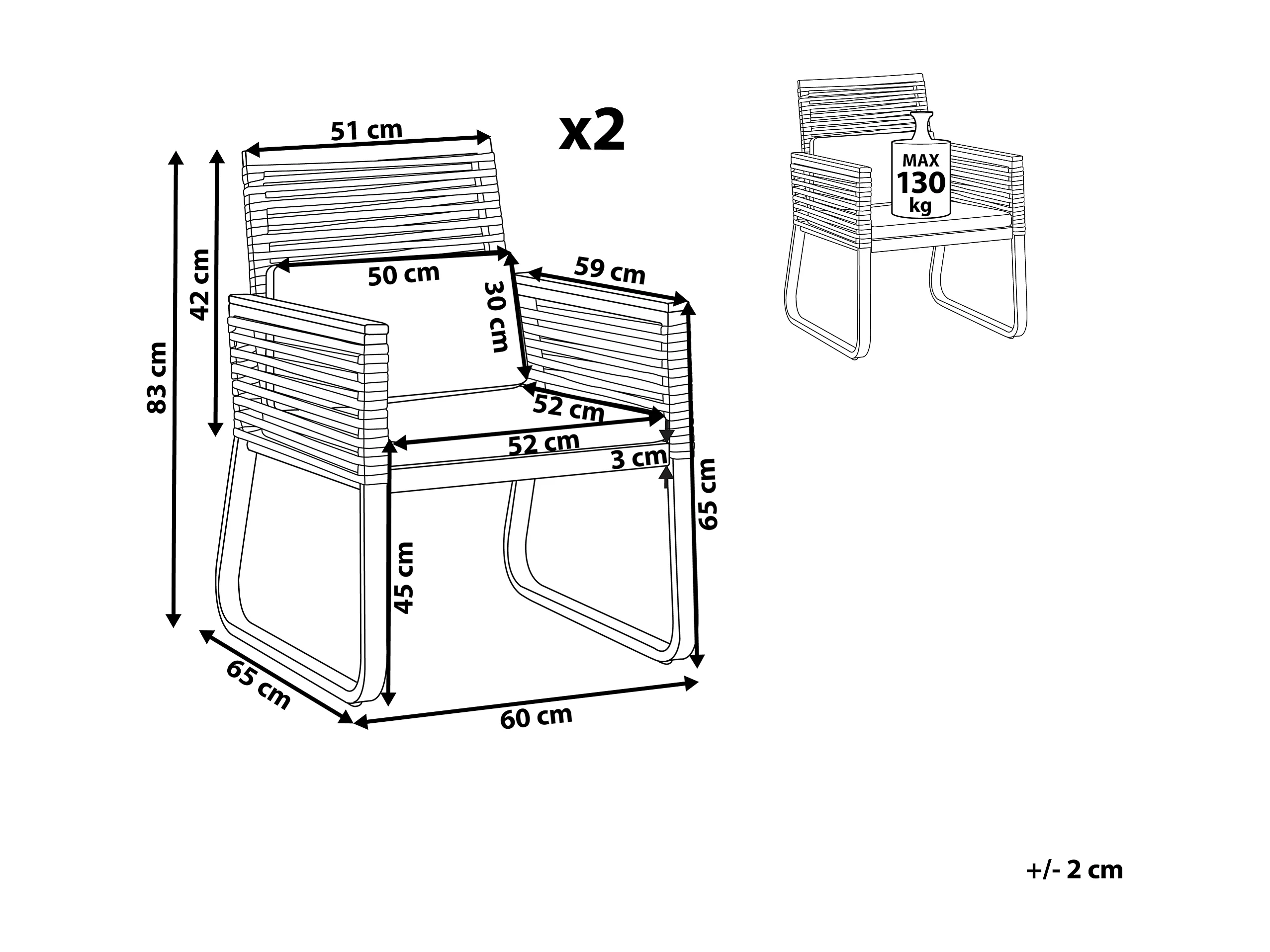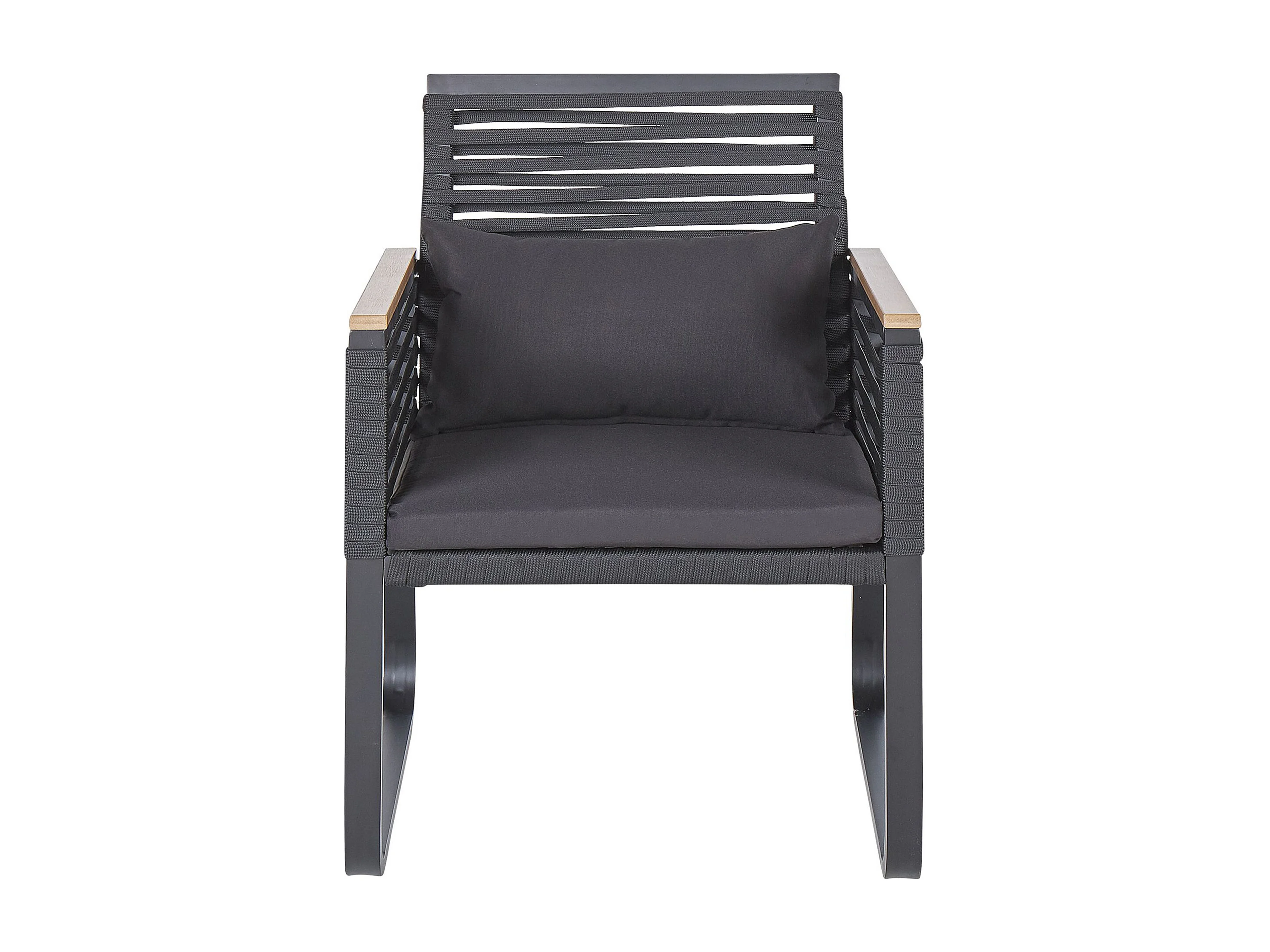Komfortables 2er Set Gartenstühle Aluminium / Flachseil schwarz - Inklusive Polsterkissen - Stilvoll und Wetterbeständig - CANETTO