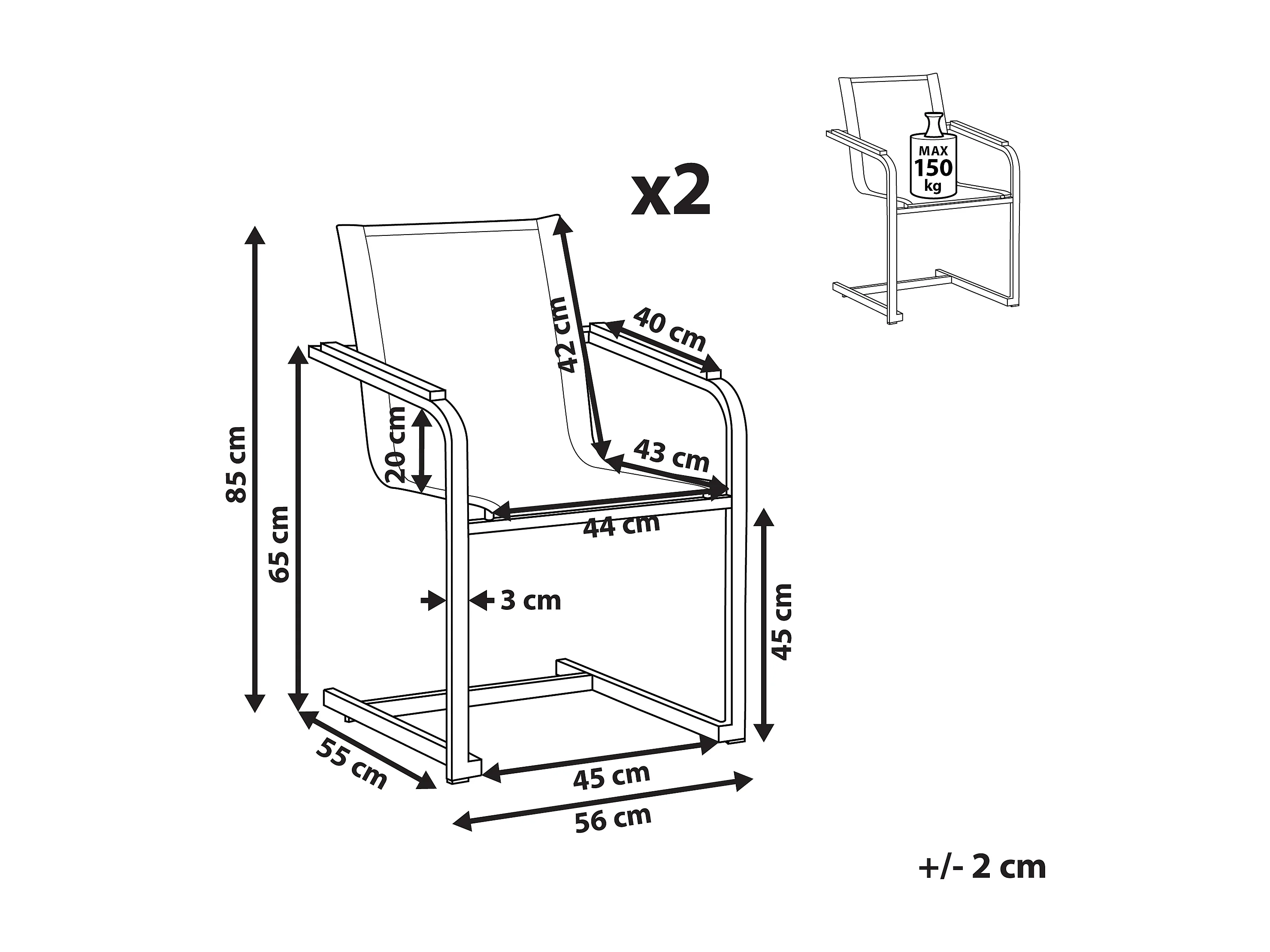 Gartenstuhl aus Edelstahl mit Polyester in Beige 2er Set Moderner Look Cosoleto