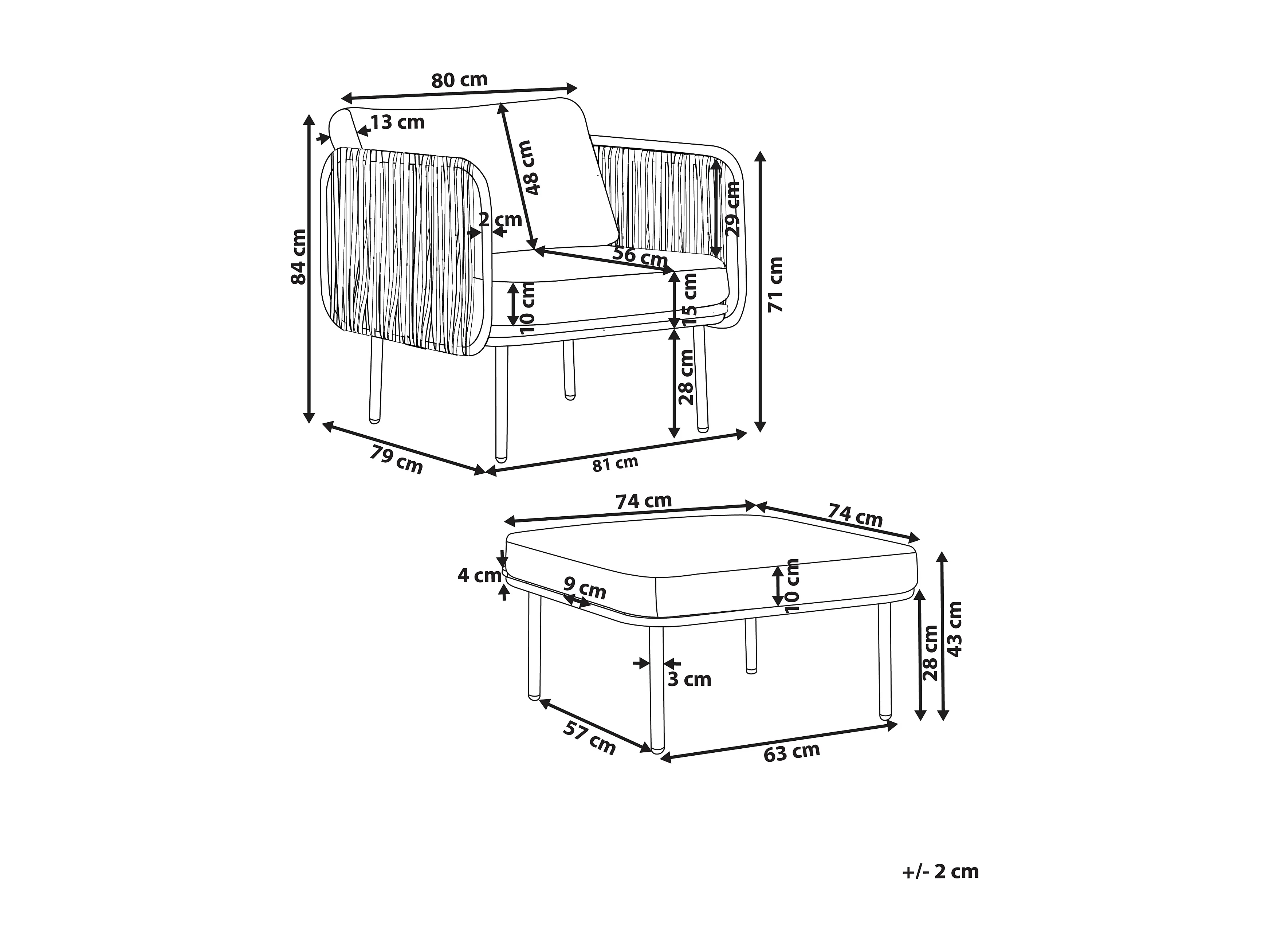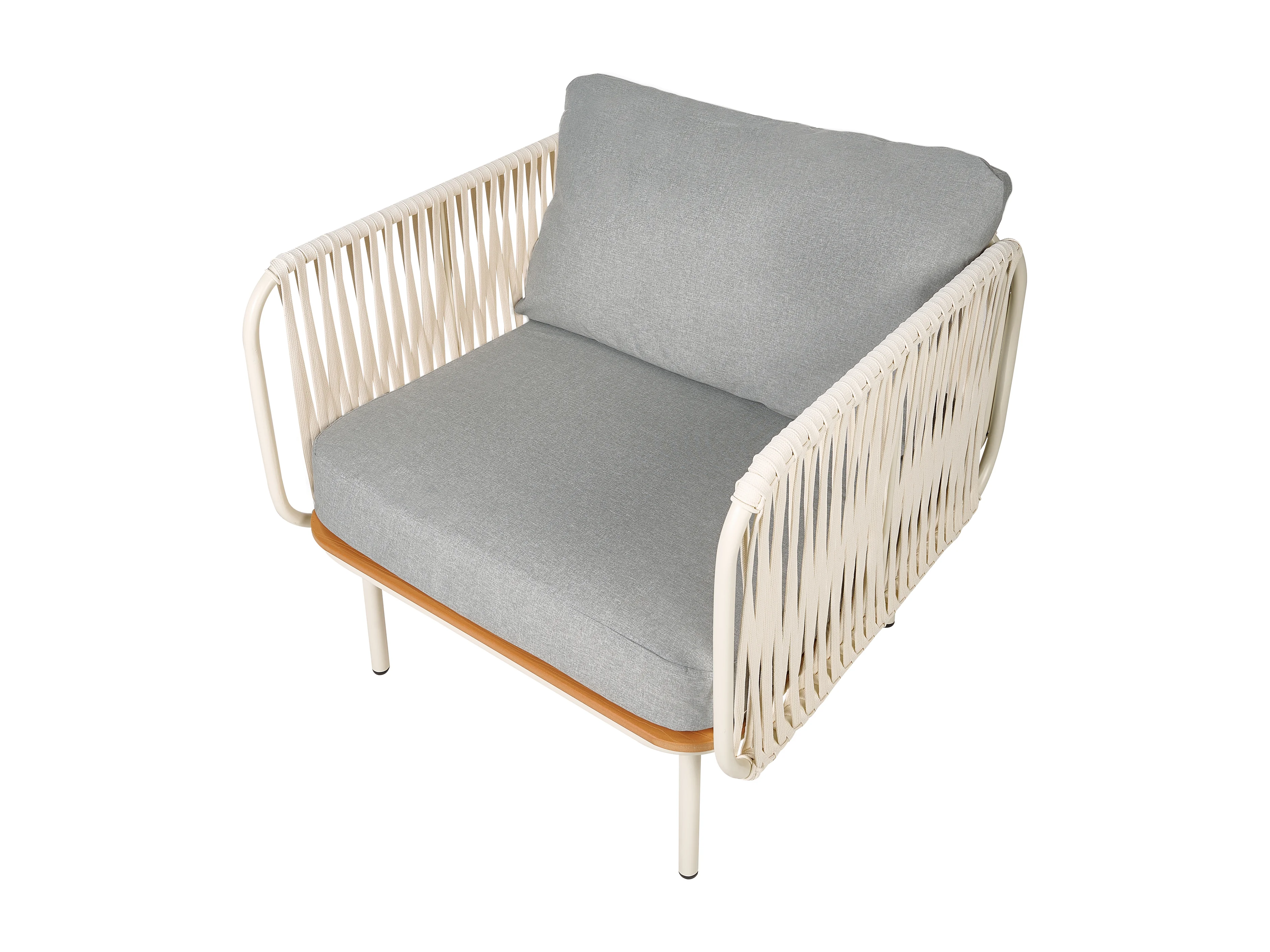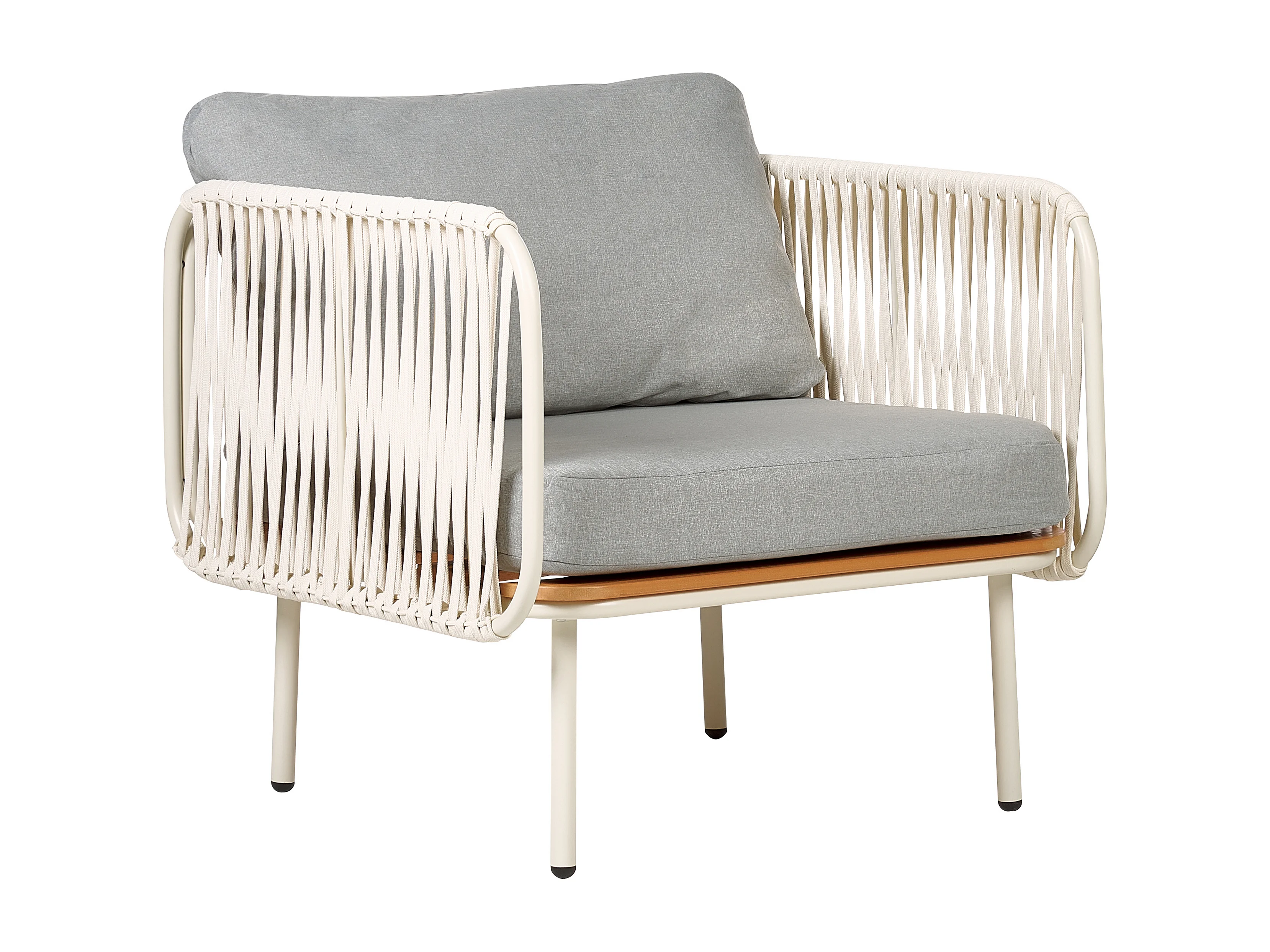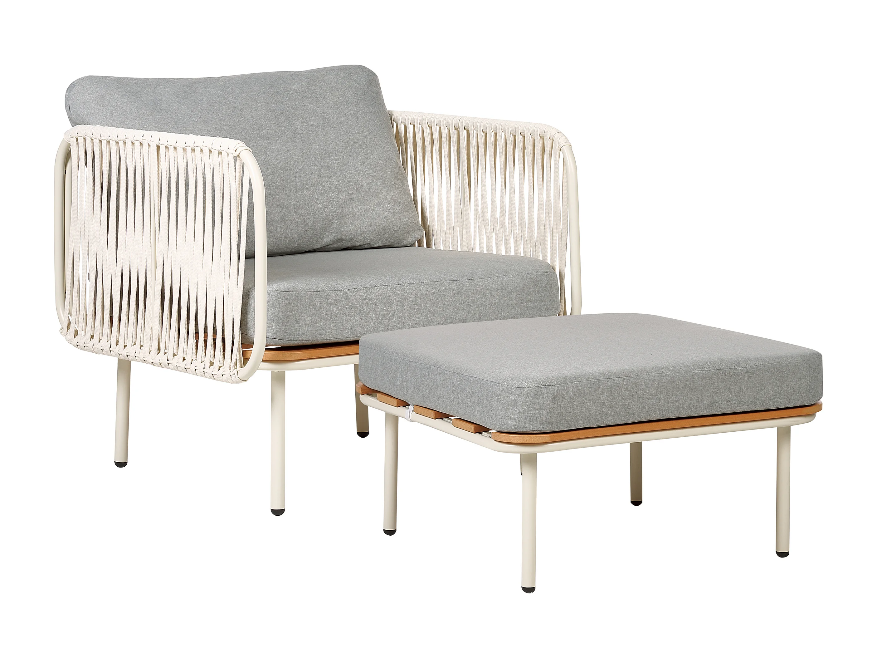 Gartensessel mit Ottomane Set weiß aus Metall Kunstholz Auflage grau Senise