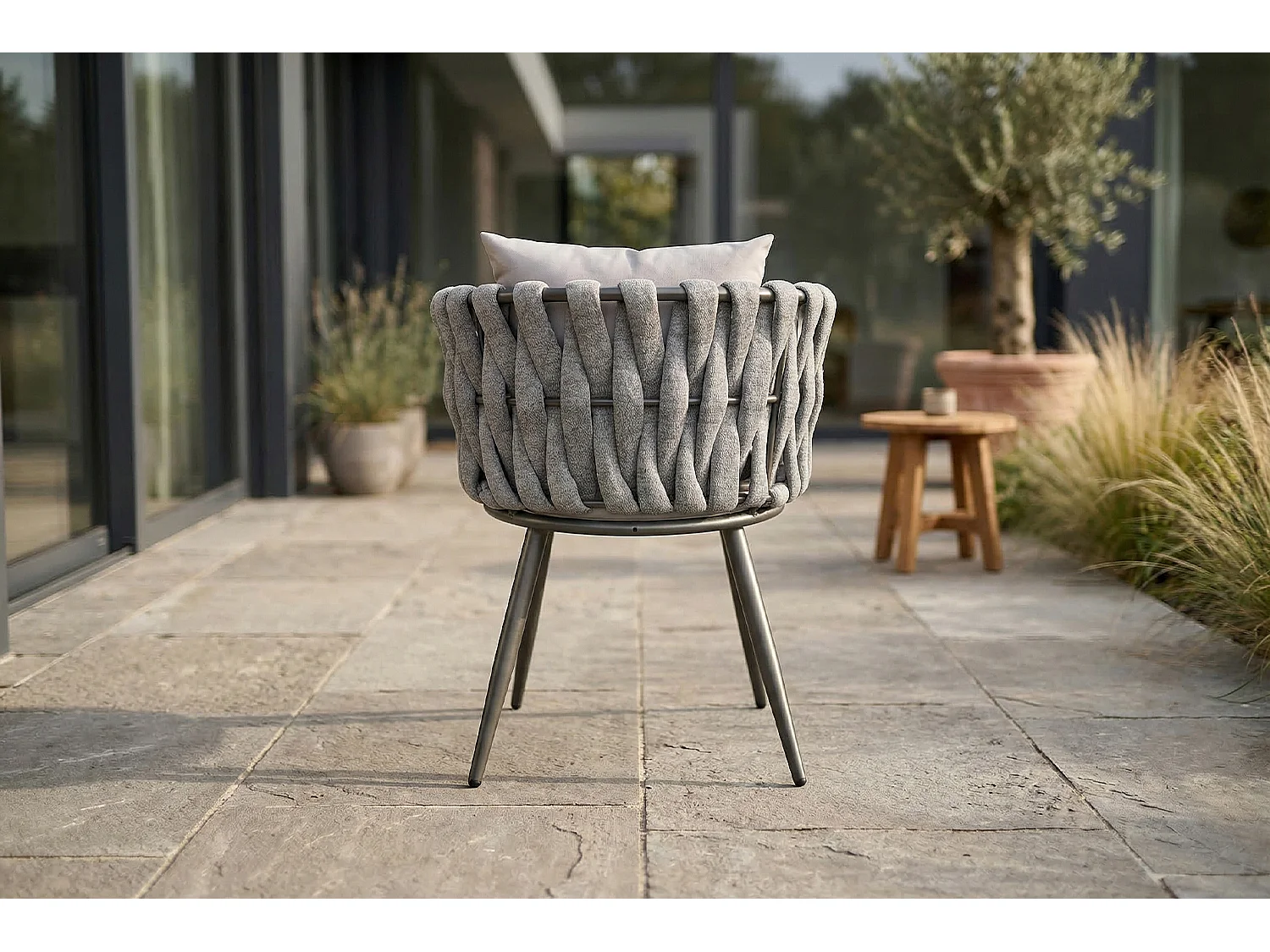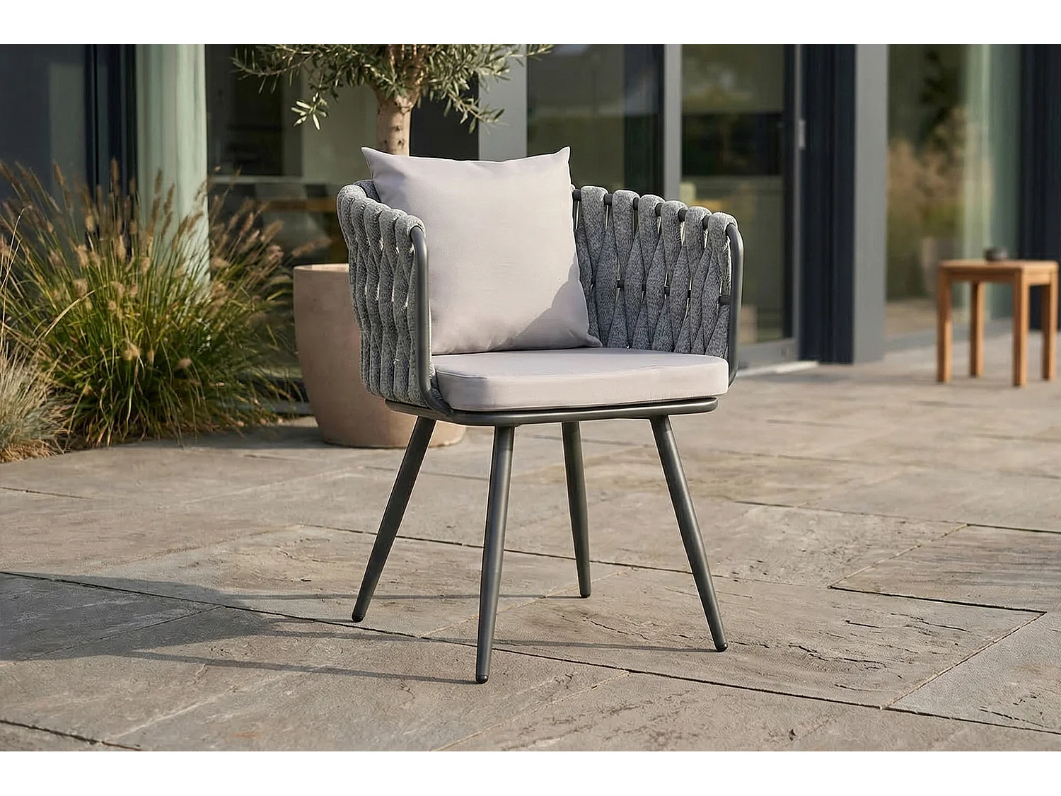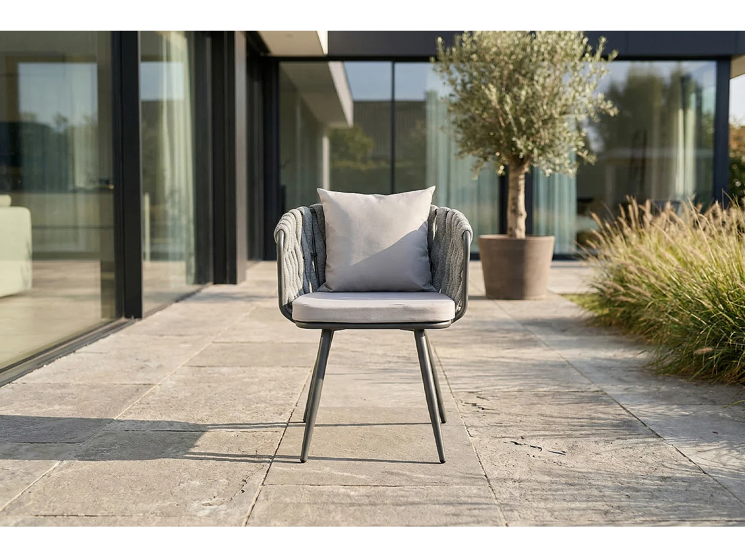 Gartenstuhl - Hellgrau Metall, Kunststoff - LUSHA