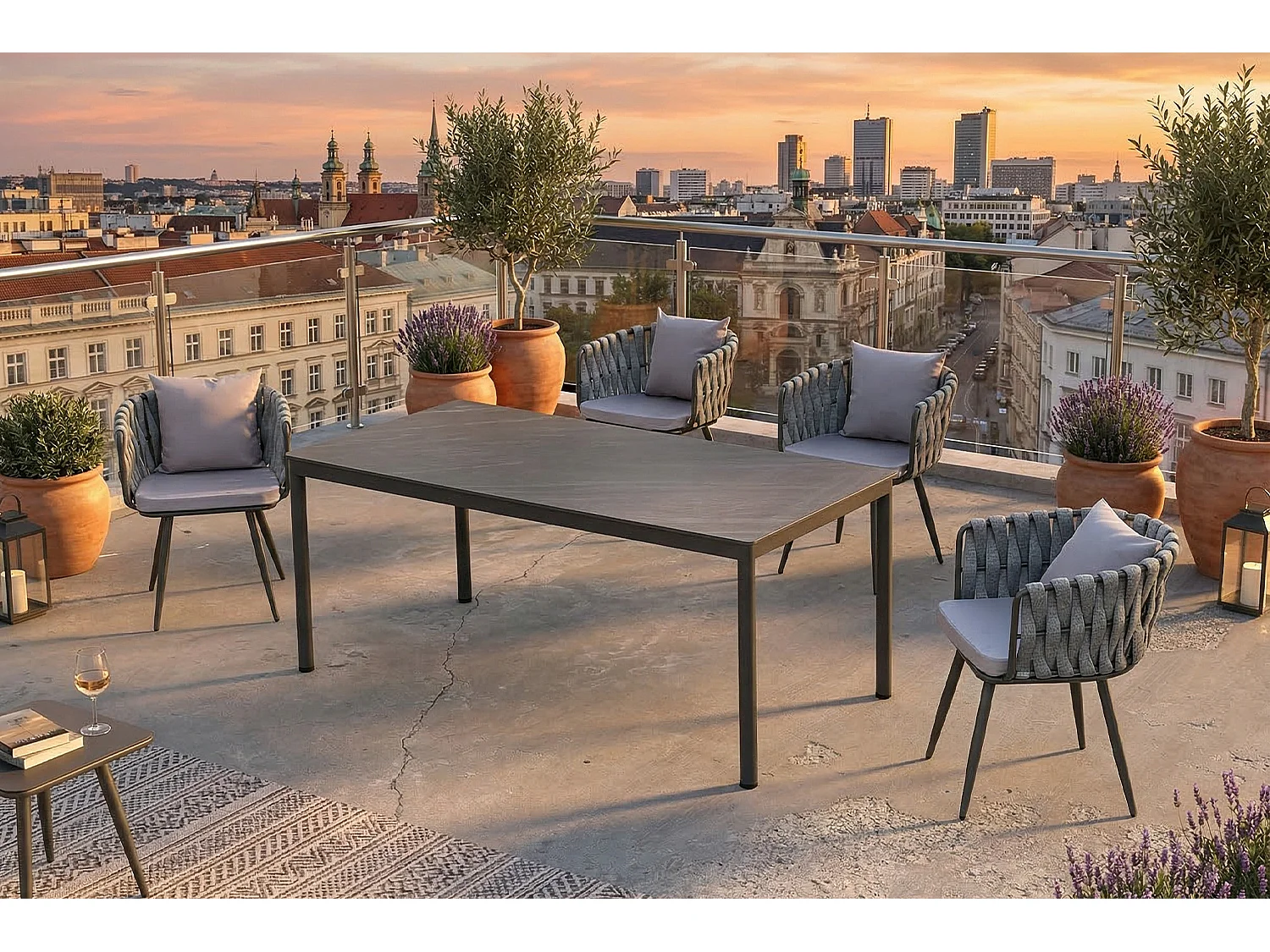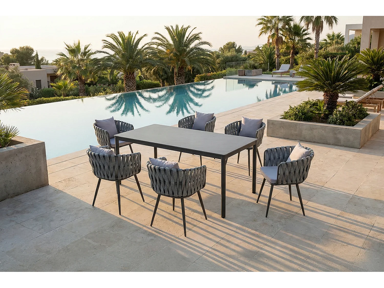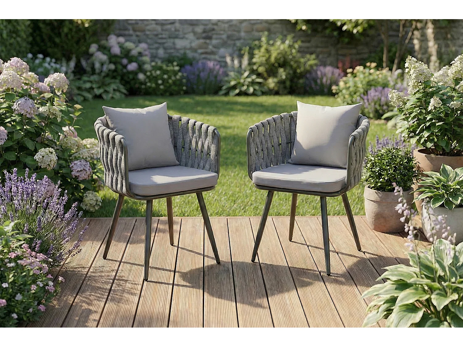 Gartenstuhl - Hellgrau Metall, Kunststoff - LUSHA