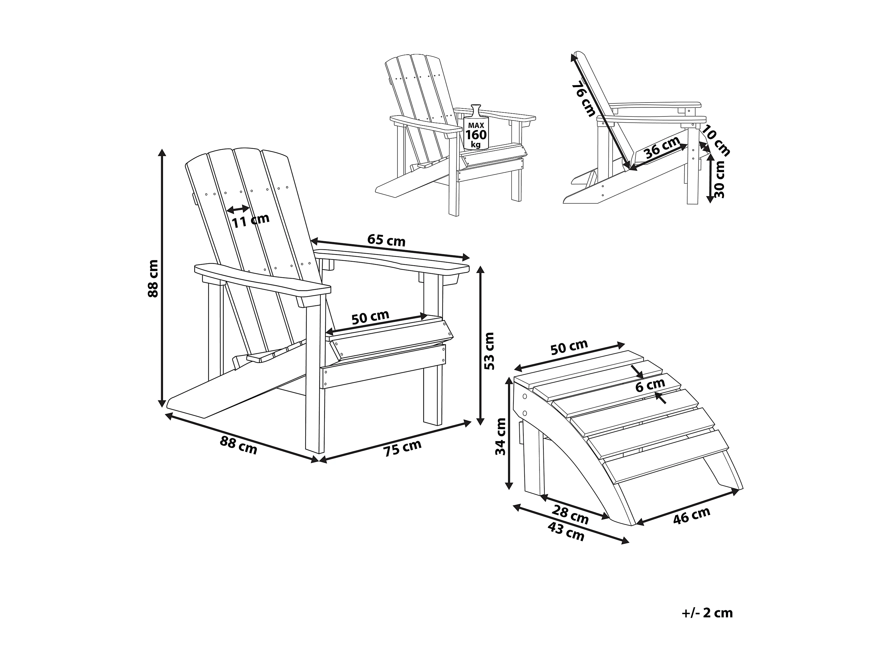 Gartenstuhl ADIRONDACK mit Fussstütze Türkis