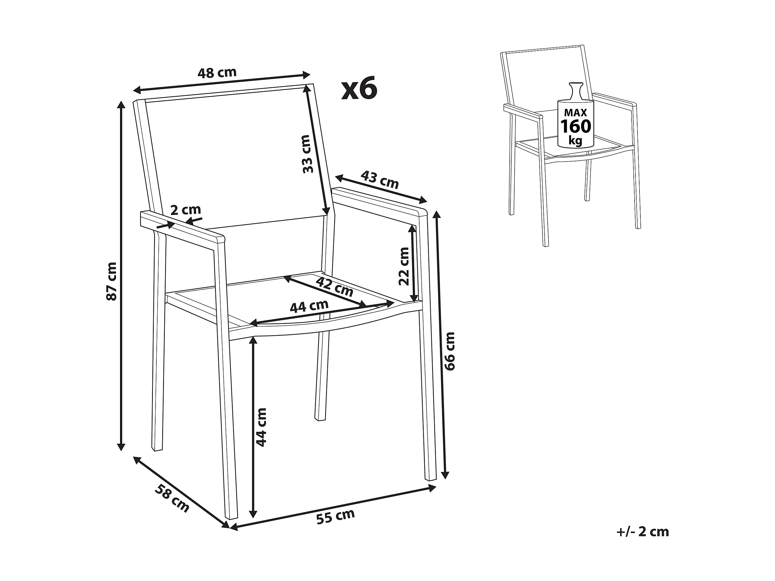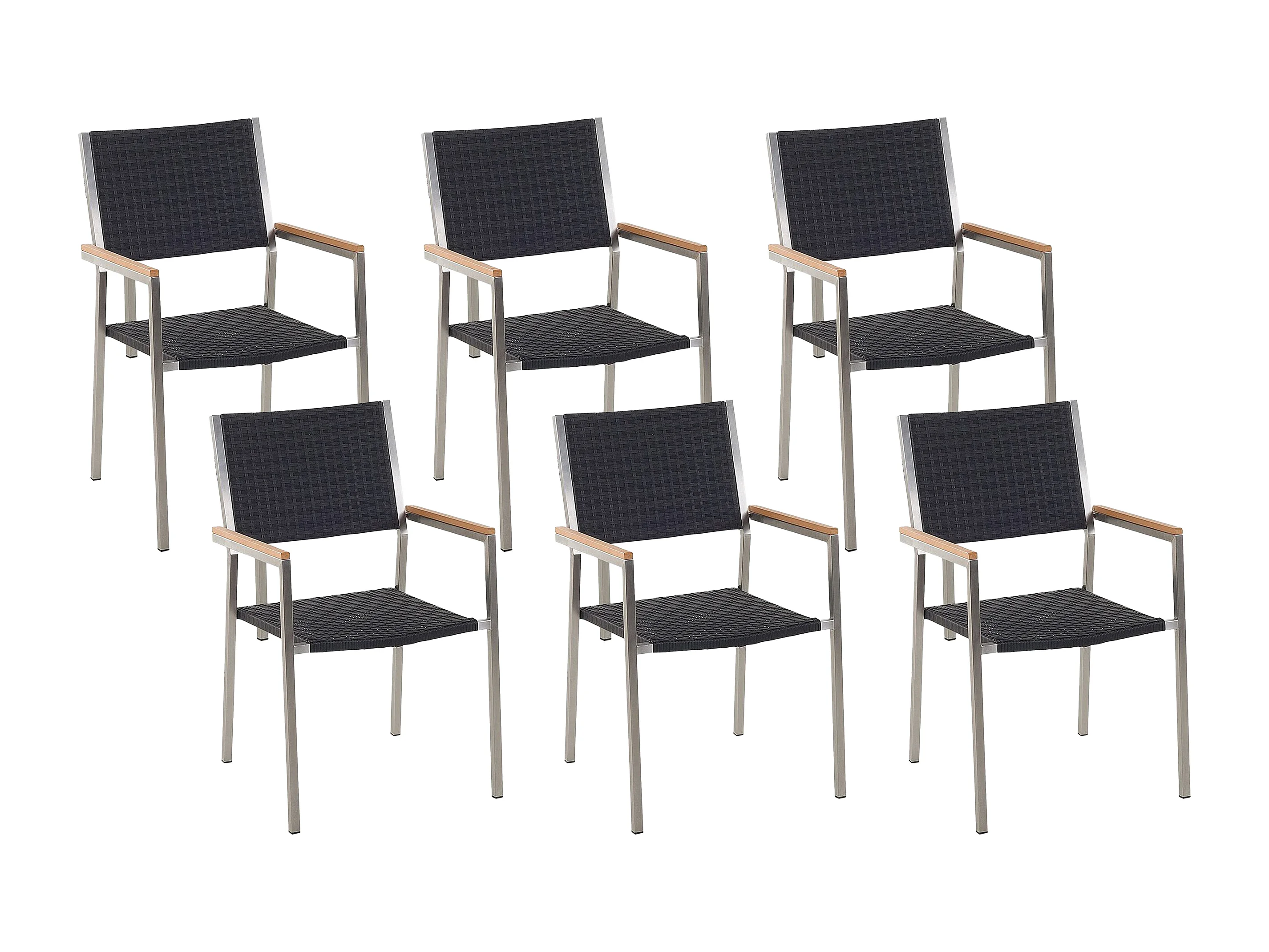 Praktisches Gartenstuhl Set Rattan Edelstahl 6er Set schwarz / silber Grosseto