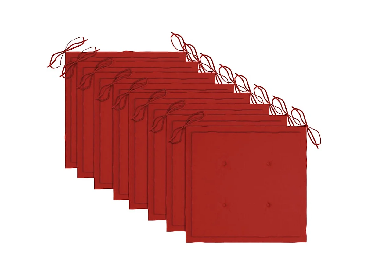 Gartenstühle mit roten Kissen 8er Set aus massivem Teakholz