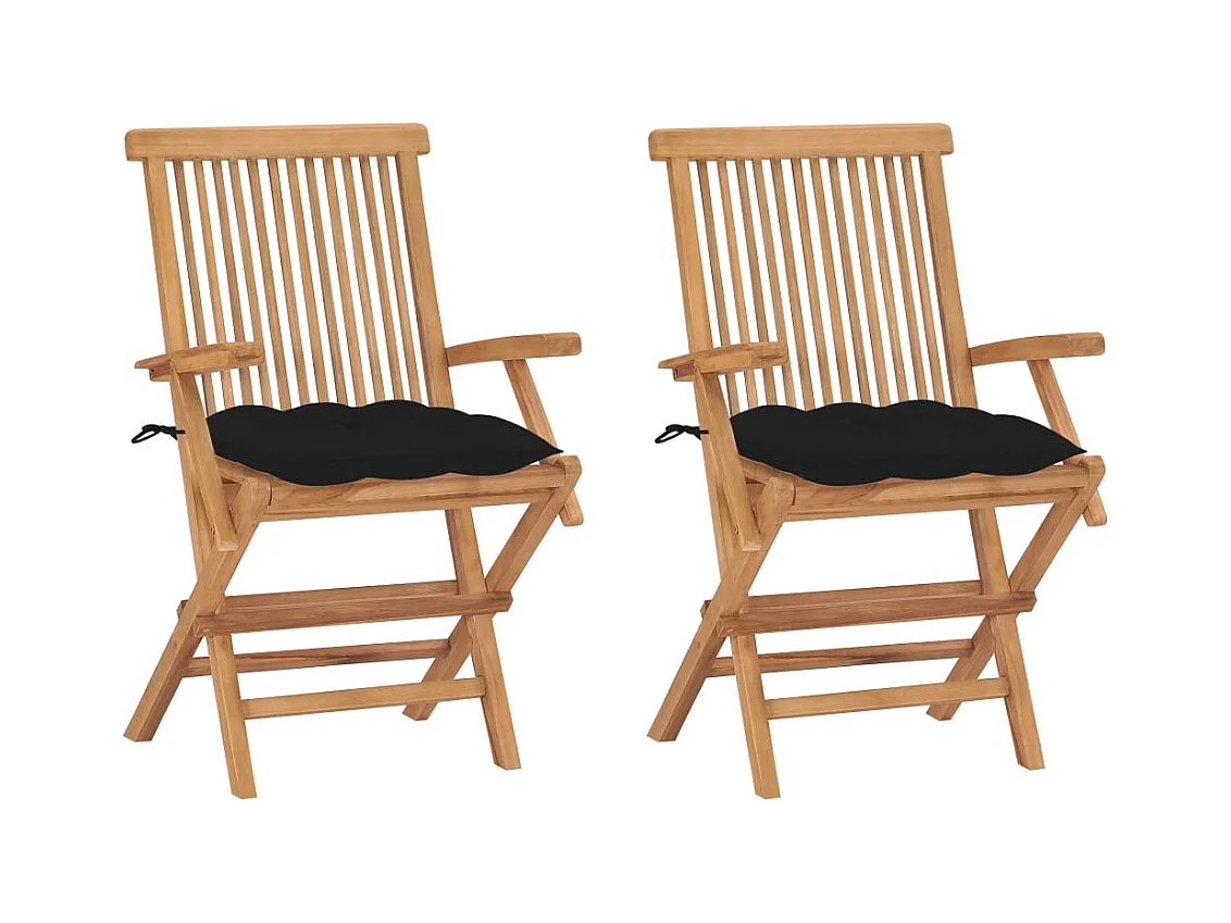 Gartenstühle mit Schwarzen Kissen 2 Stk. Massivholz Teak