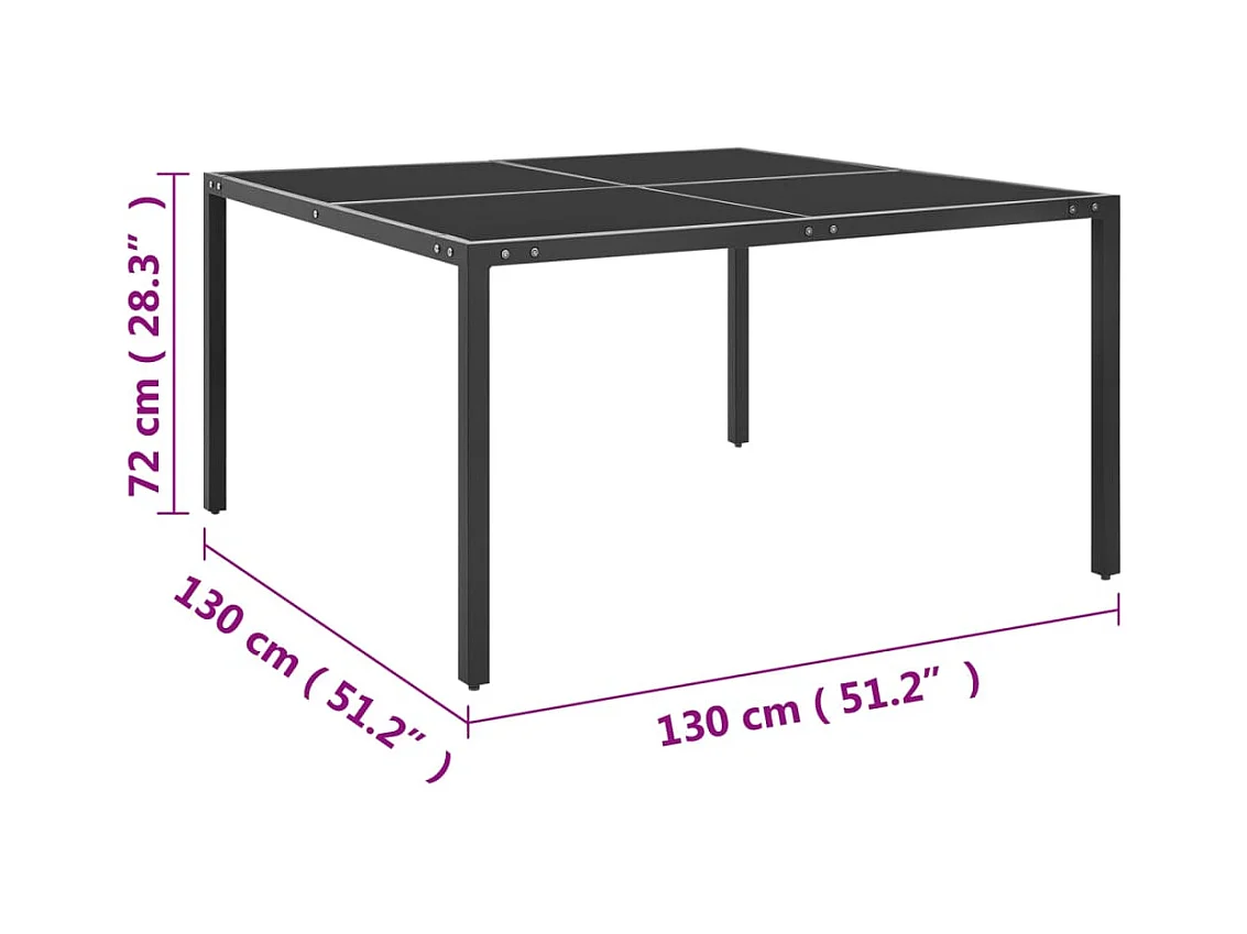 Gartentisch Anthrazit 130x130x72 cm Stahl und Glas