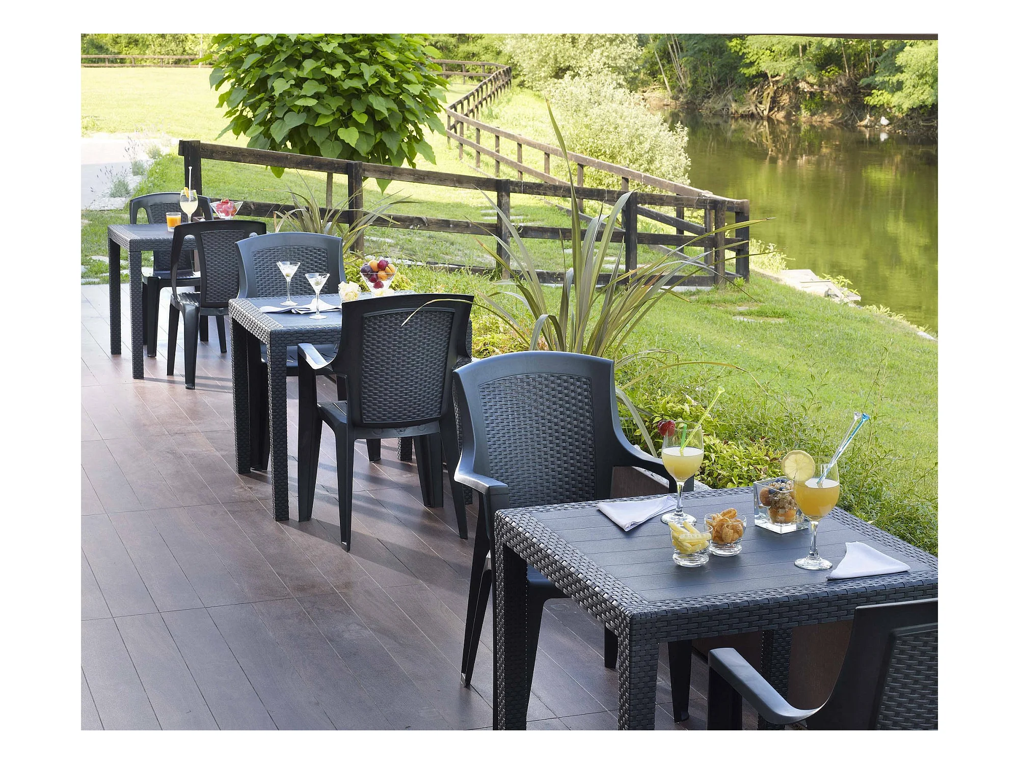 Gartentisch Daanan, Quadratischer Gartentisch, feststehender Couchtisch in Rattan-Optik, 100 % Made in Italy, 80x80h72 cm, Anthrazit