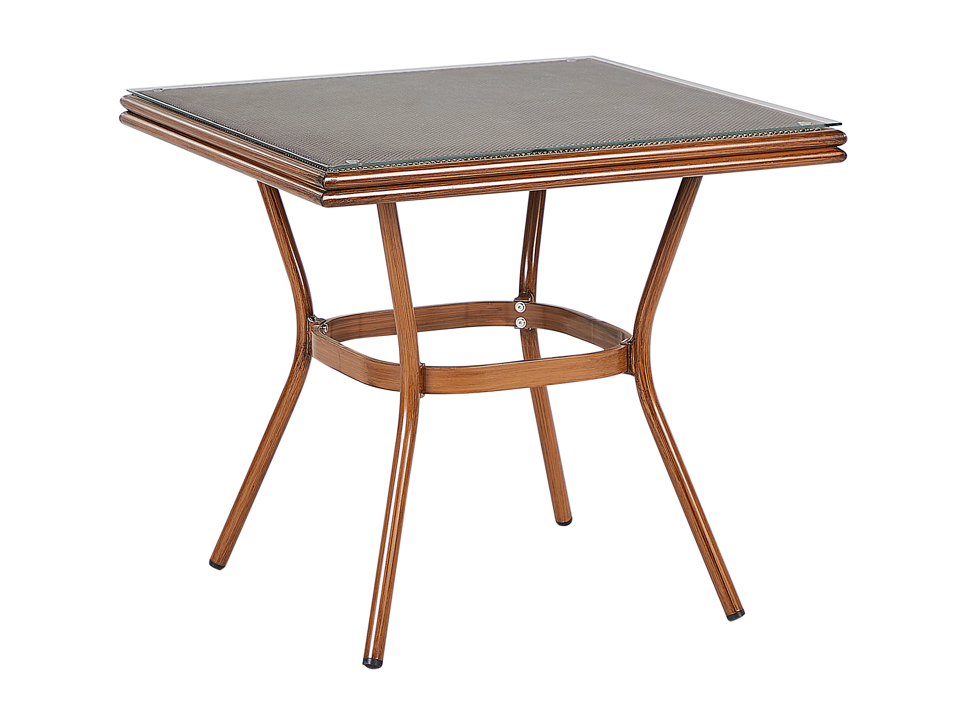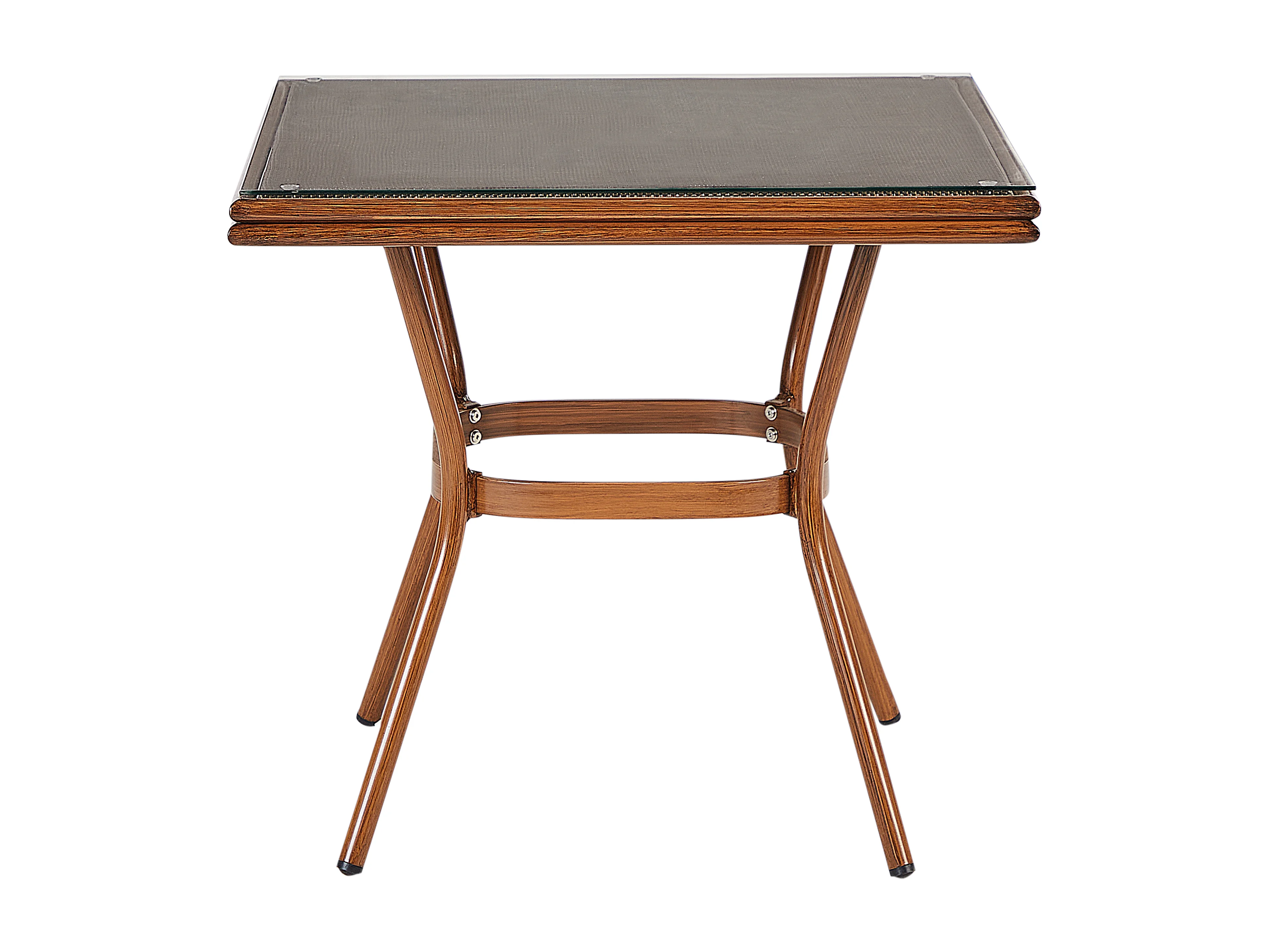 Gartentisch grau quadratisch 80x80cm Aluminiumgestell dunkle Holzoptik Caspri II