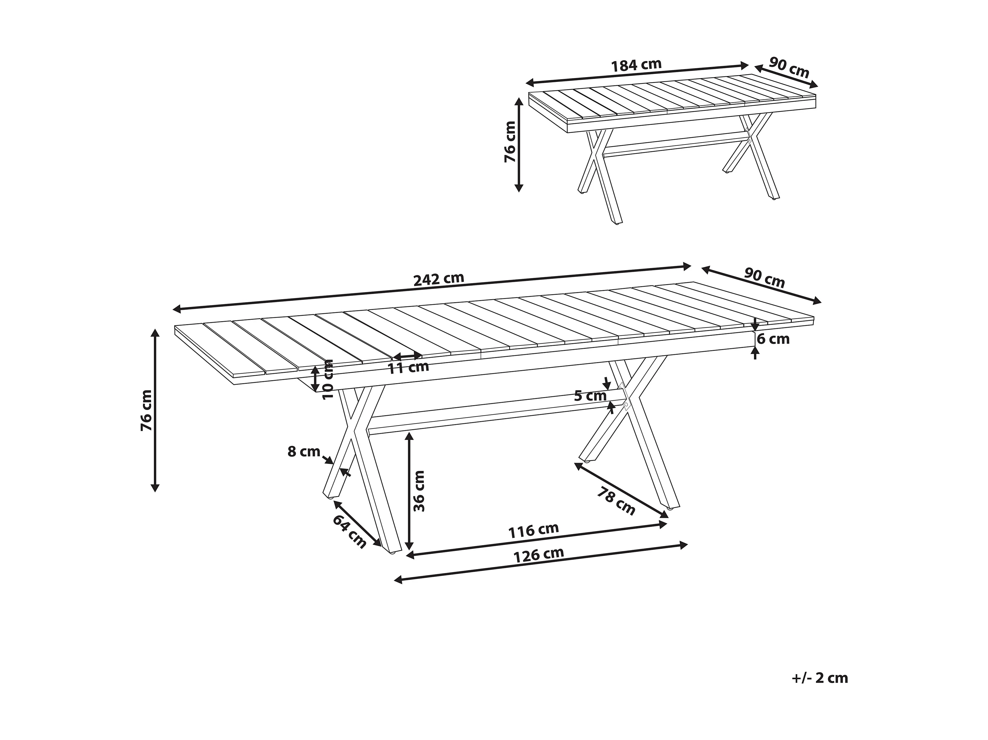 Ausziehbarer Gartentisch FANES 184/242 cm 90 cm Metall Graphitgrau