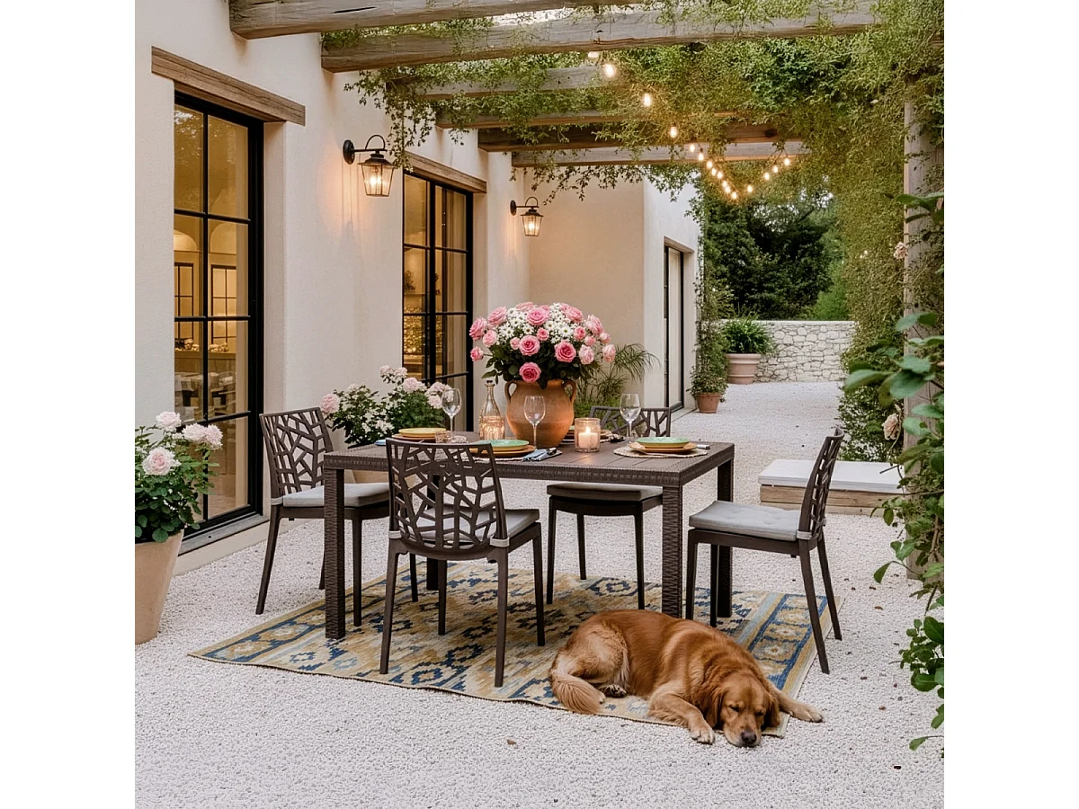Gartentisch im Freien 150x90cm aus Rattan-Polypropylen Houston - Taubengrau