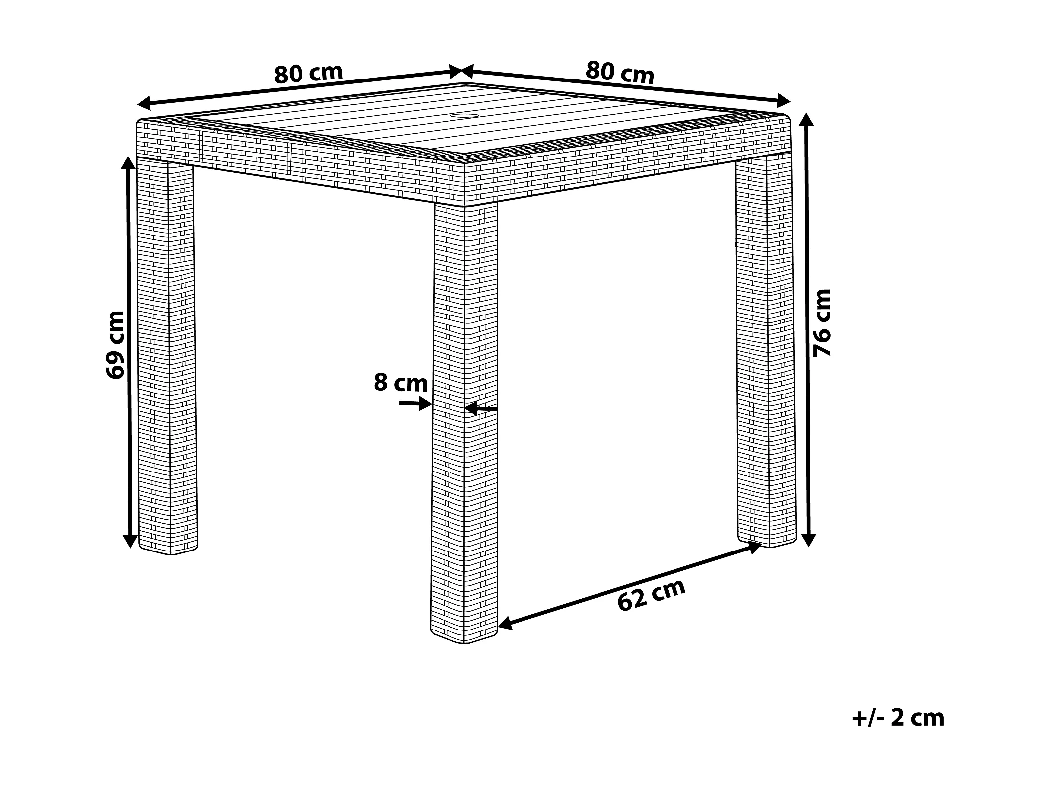 Gartentisch Rattanoptik aus Kunststoff 80 x 80 cm weiß Fossano