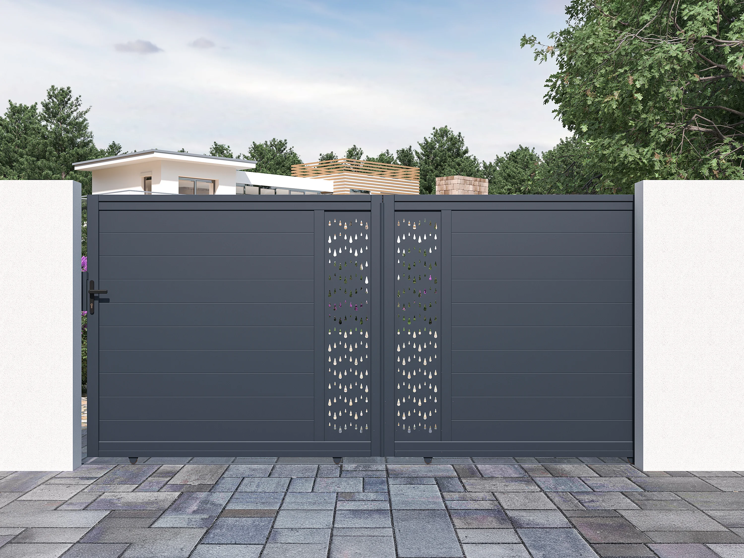 Gartentor Schiebetor mit Torantrieb - 416 x 180 cm - Aluminium - Halbvoll mit Muster - Anthrazit - GREGOR