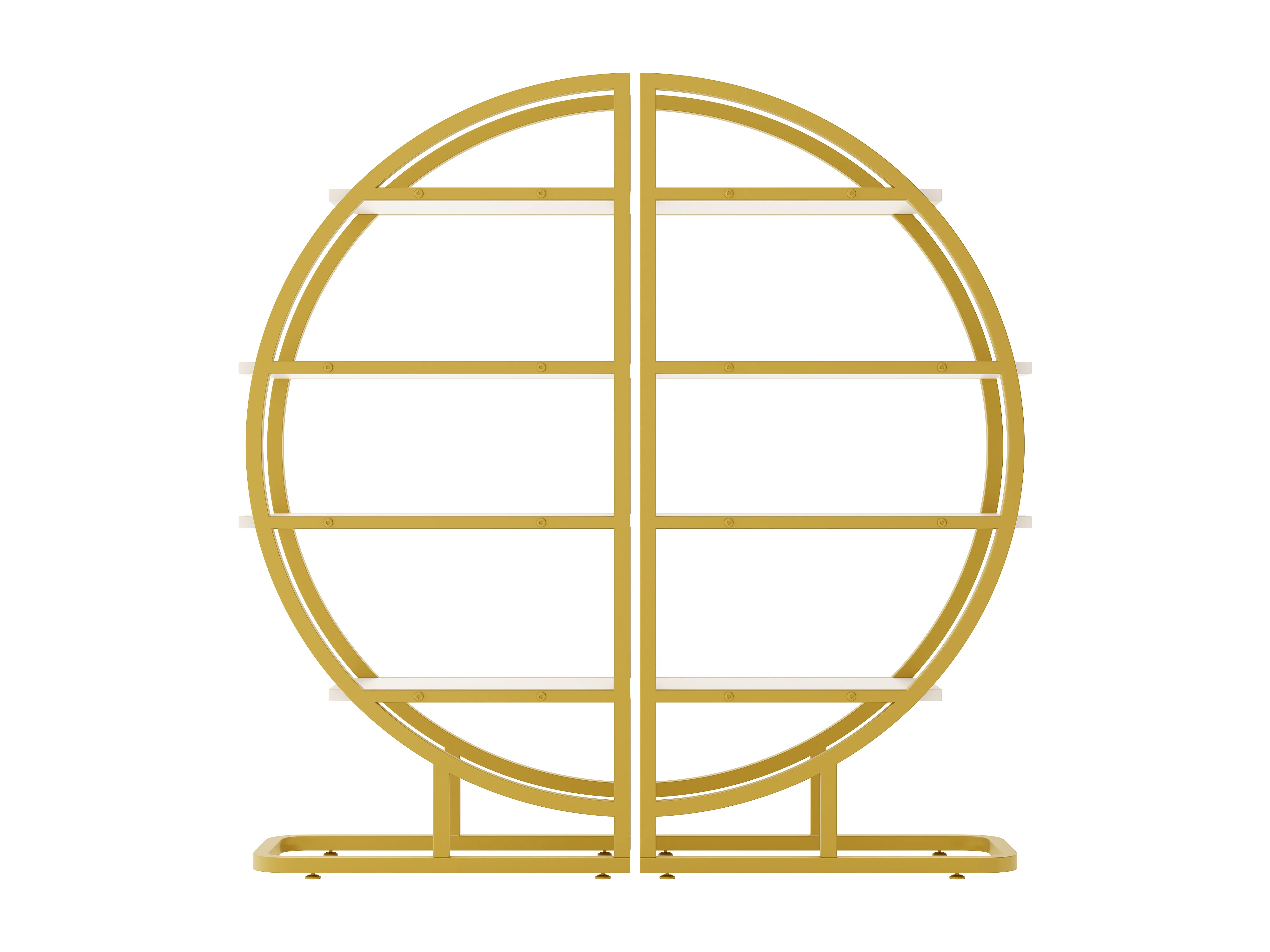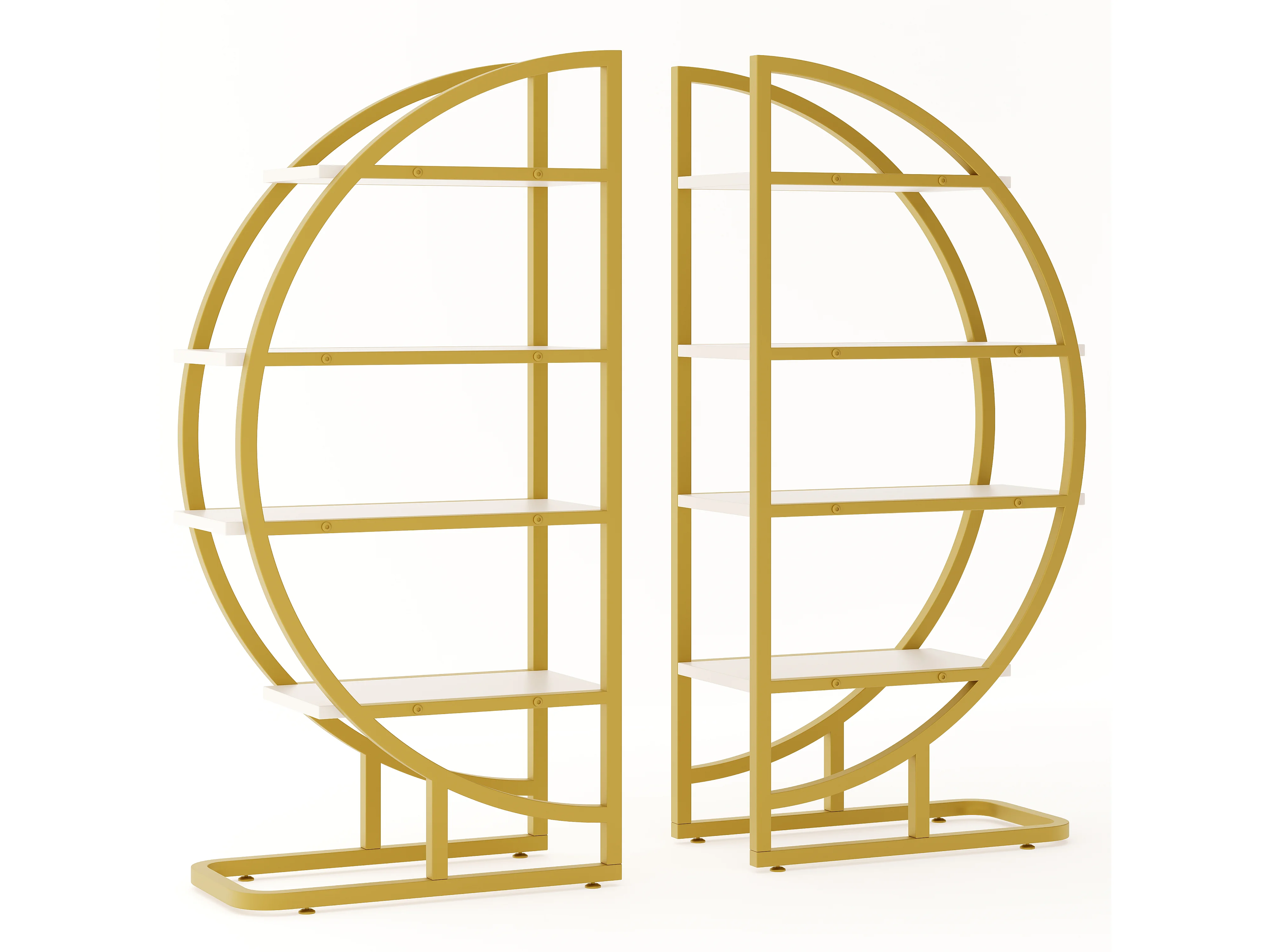 Gebogenes 2-teiliges Modulregal -120x30x130 cm - 4 Regale - Gestell aus goldenem Metall - Höhenverstellbare Füße - MDF - Gold