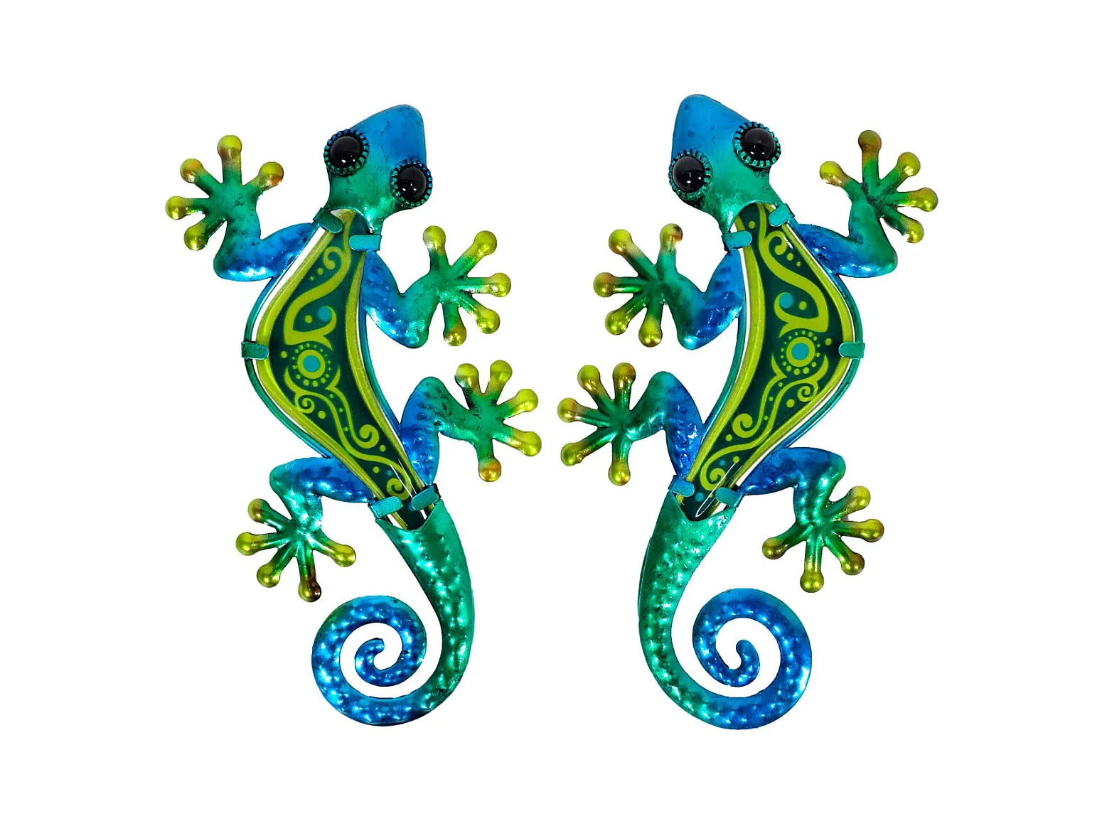 Gecko dekorative Metall und Glas grün und blau Kreis (2er Set)