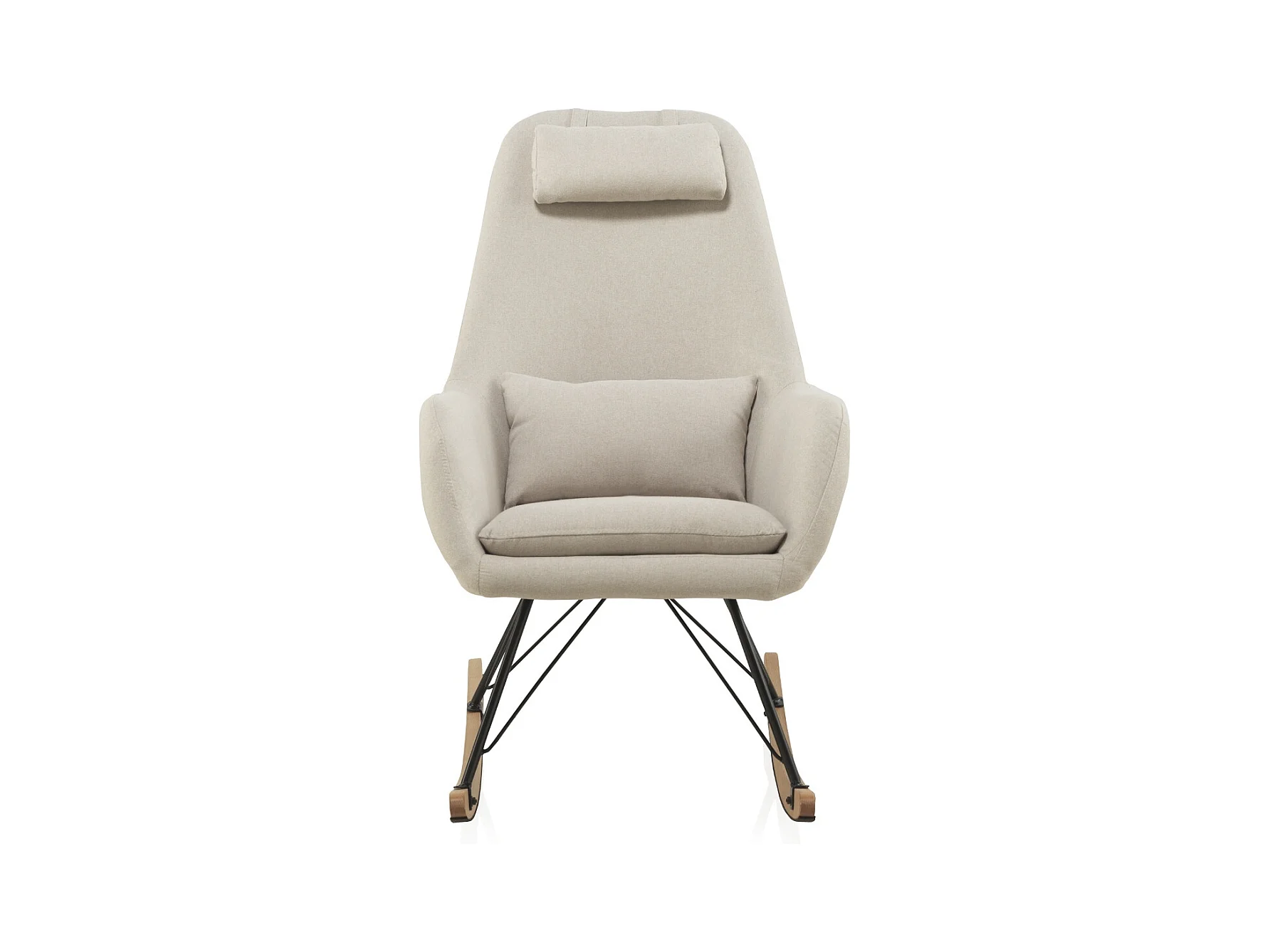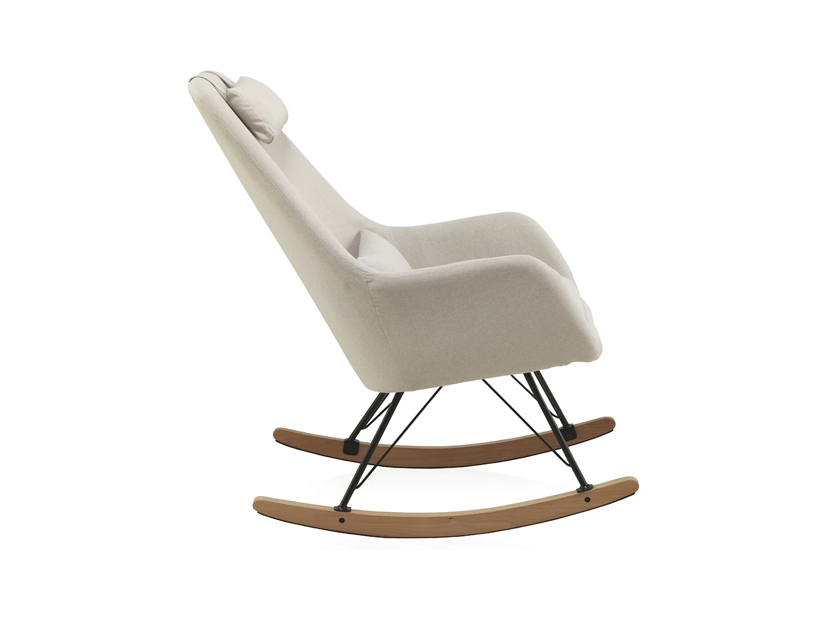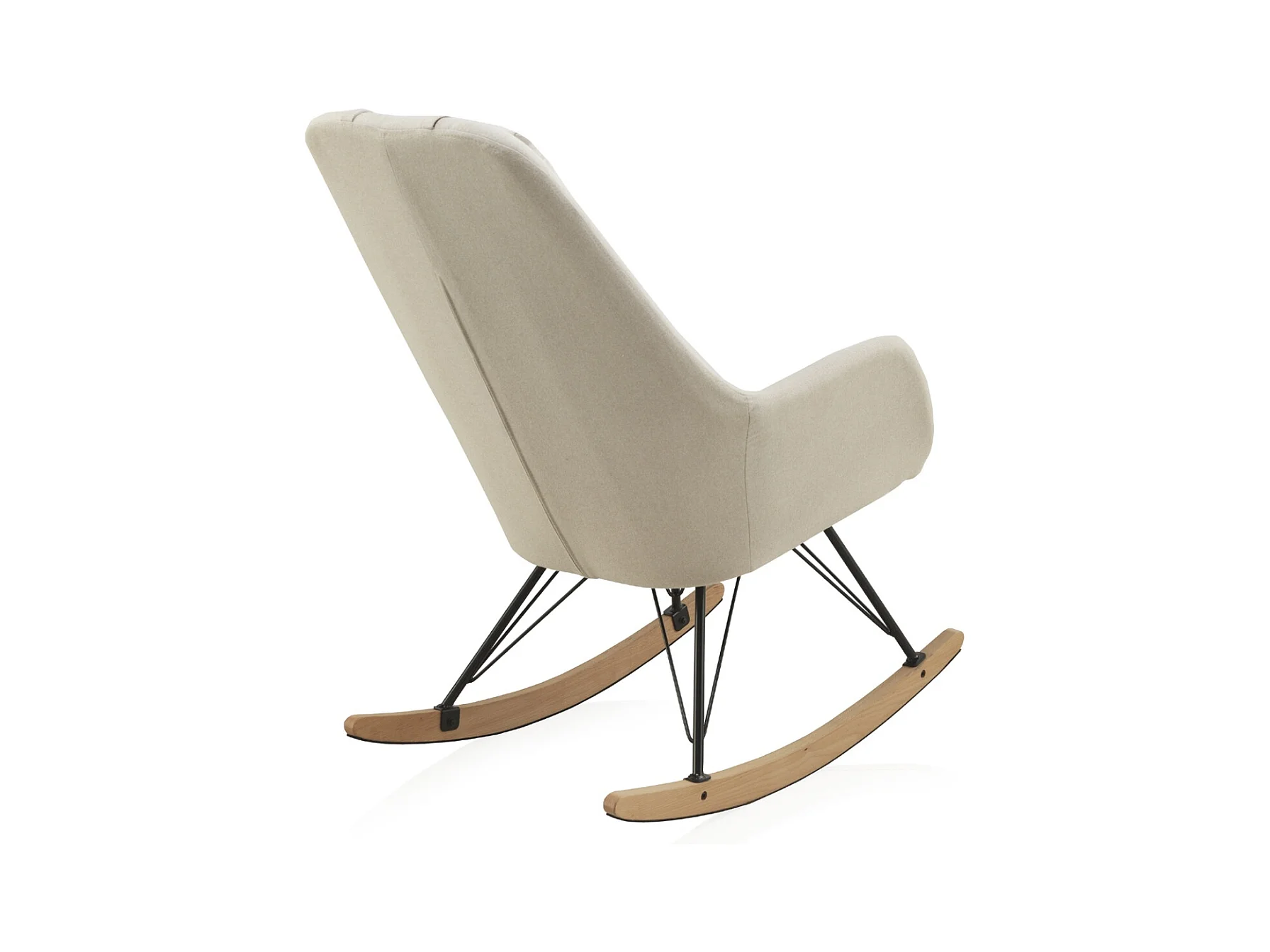 Gepolsterter Schaukelstuhl, Metallbeine und Holzschlittenfuß.