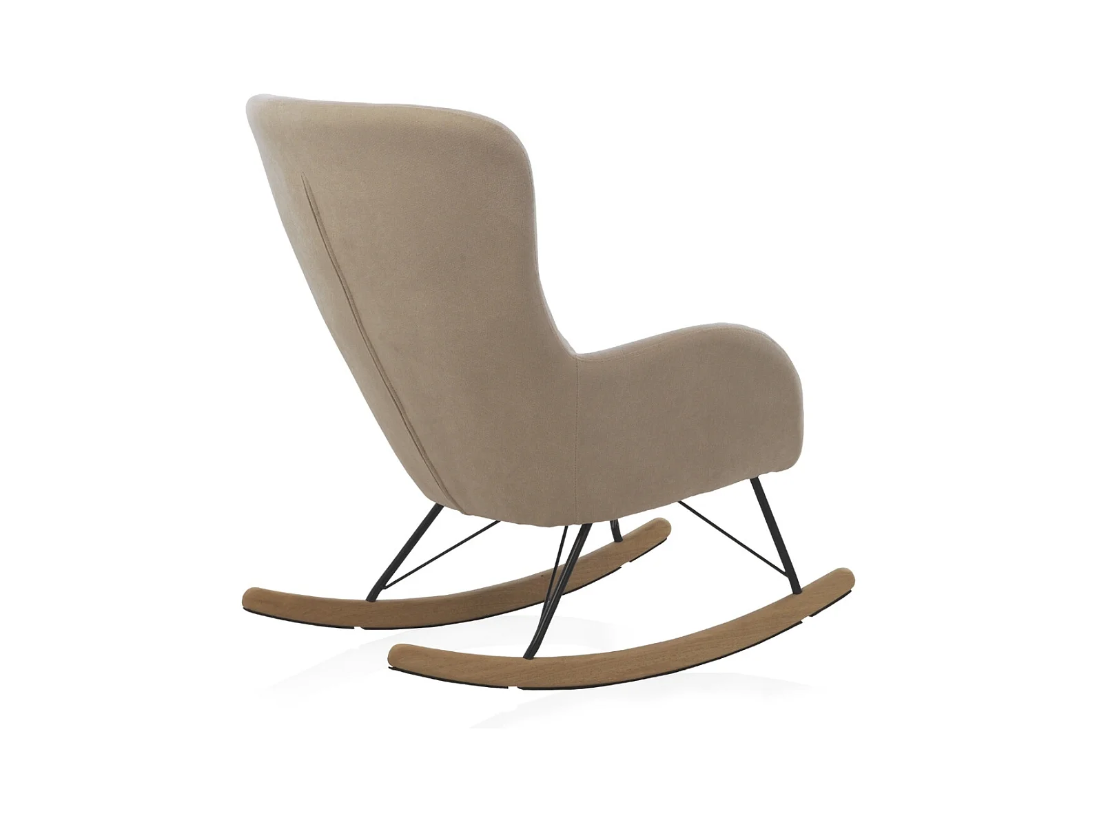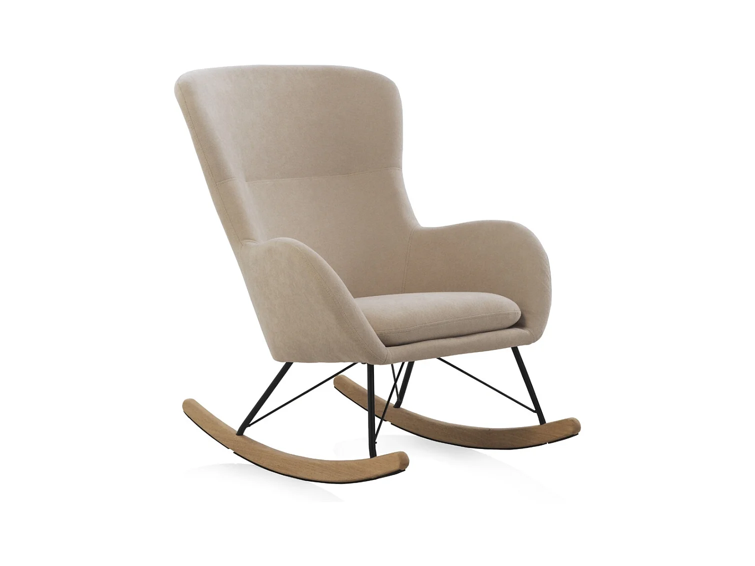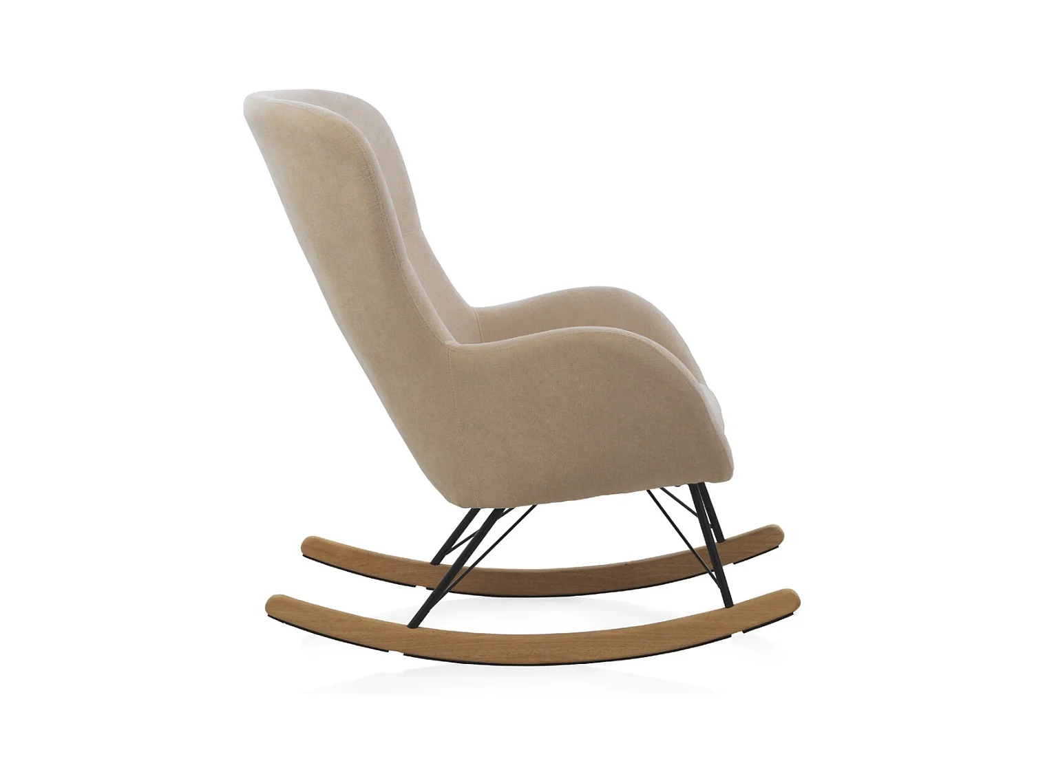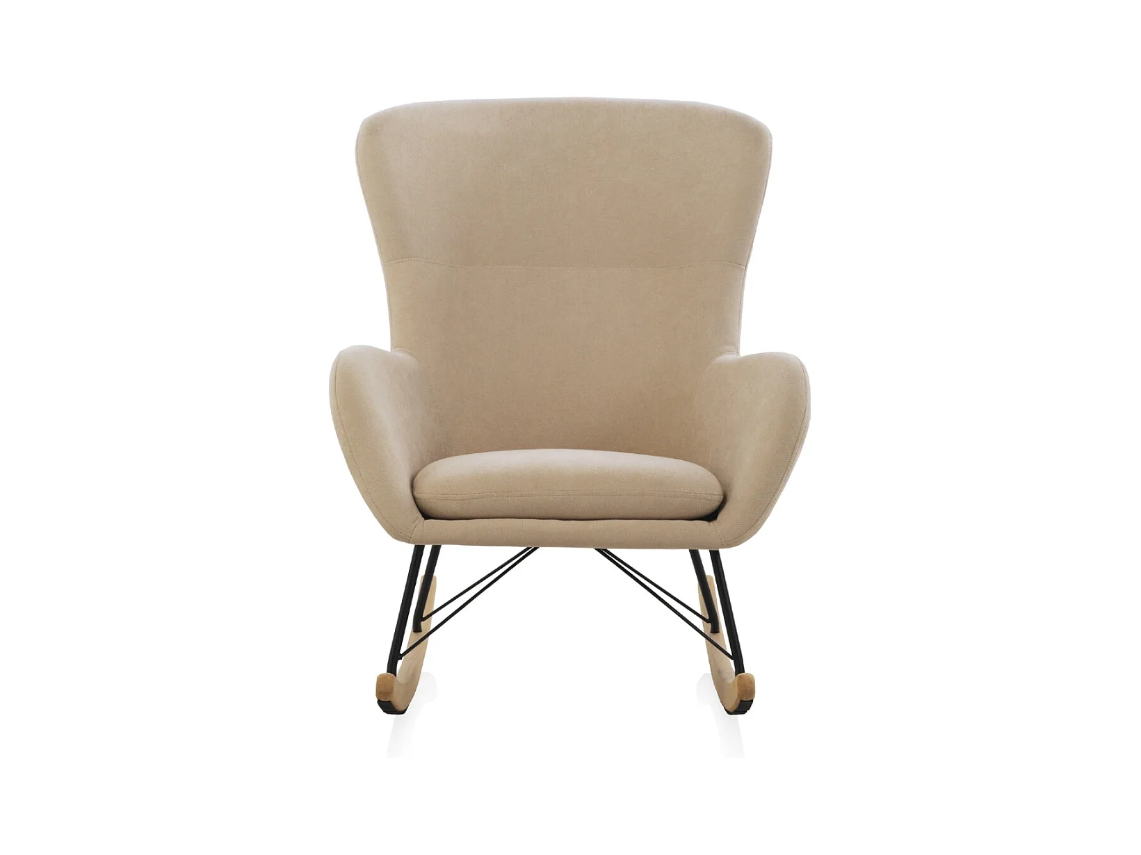 Gepolsterter Schaukelstuhl, Metallbeine und Holzsockel.