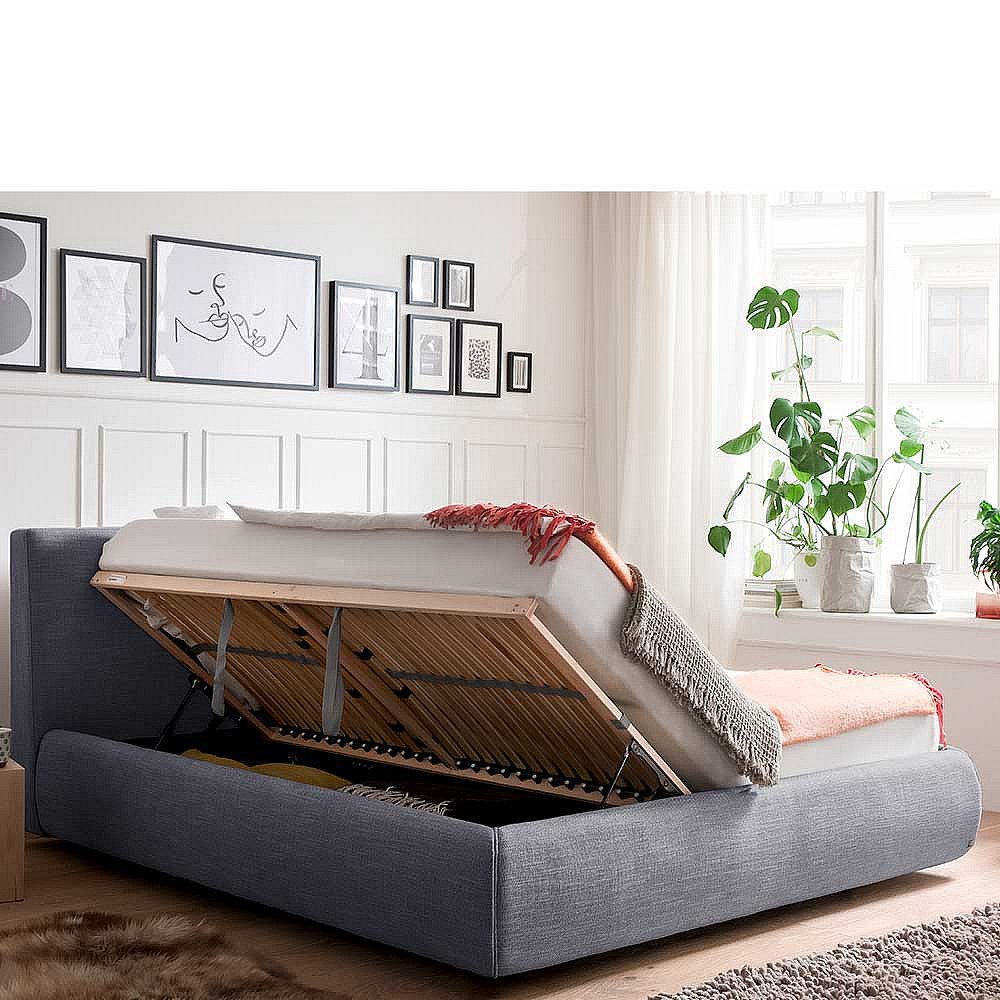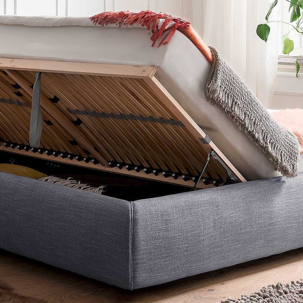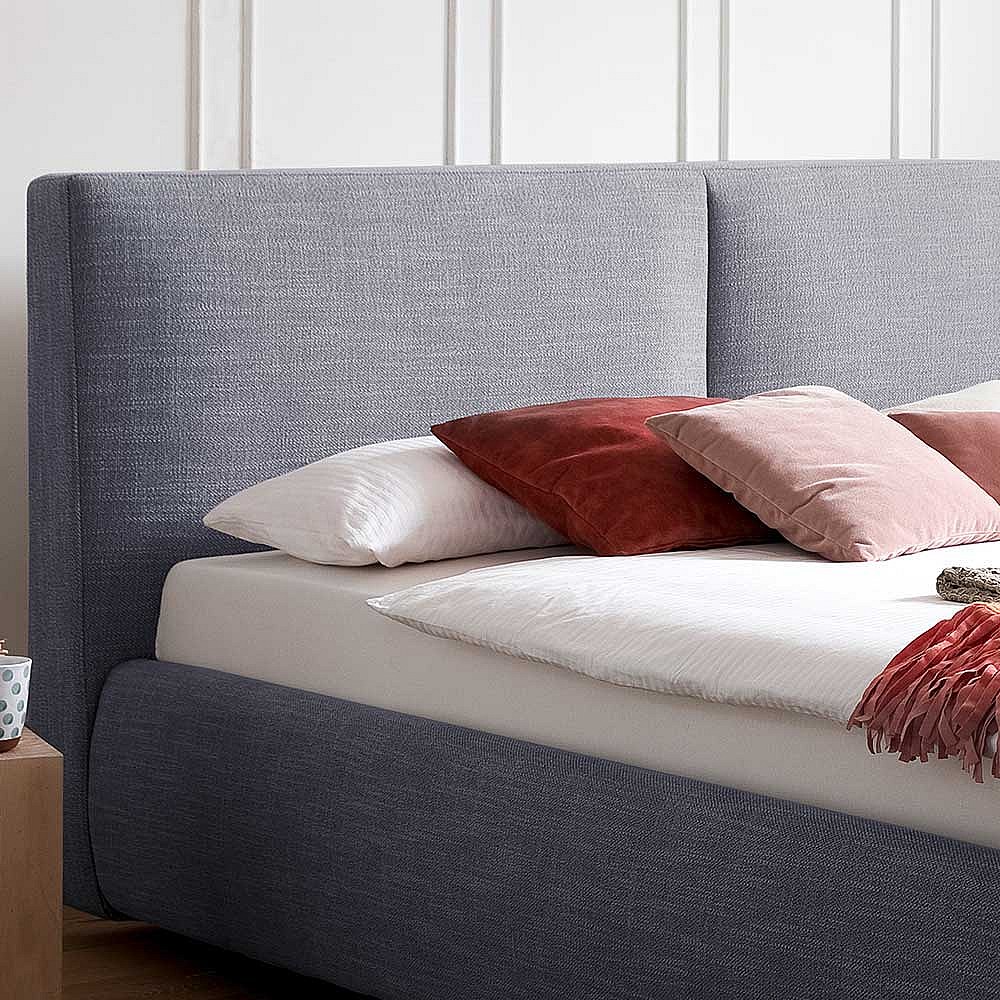 Gepolstertes Bett in Blau Webstoff Bettkasten