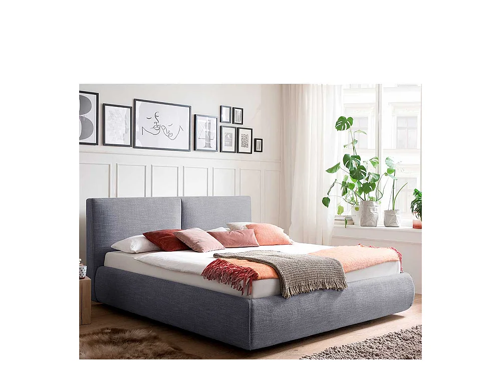 Gepolstertes Bett in Blau Webstoff Bettkasten