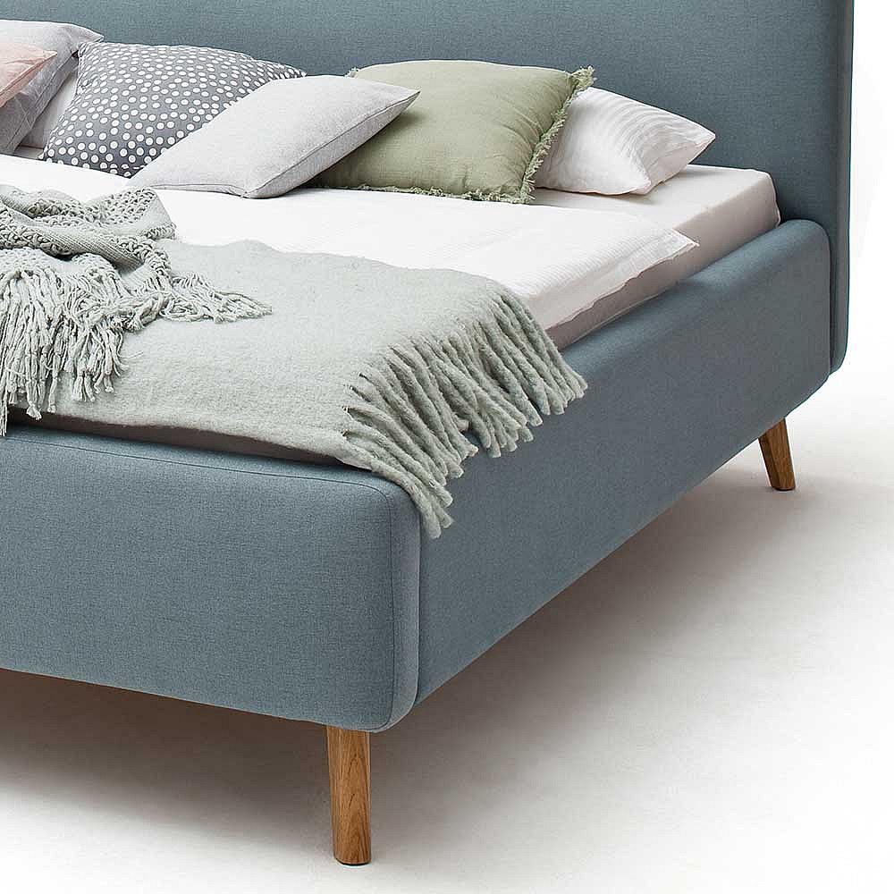 Gepolstertes Bett in Hellblau Webstoff modern