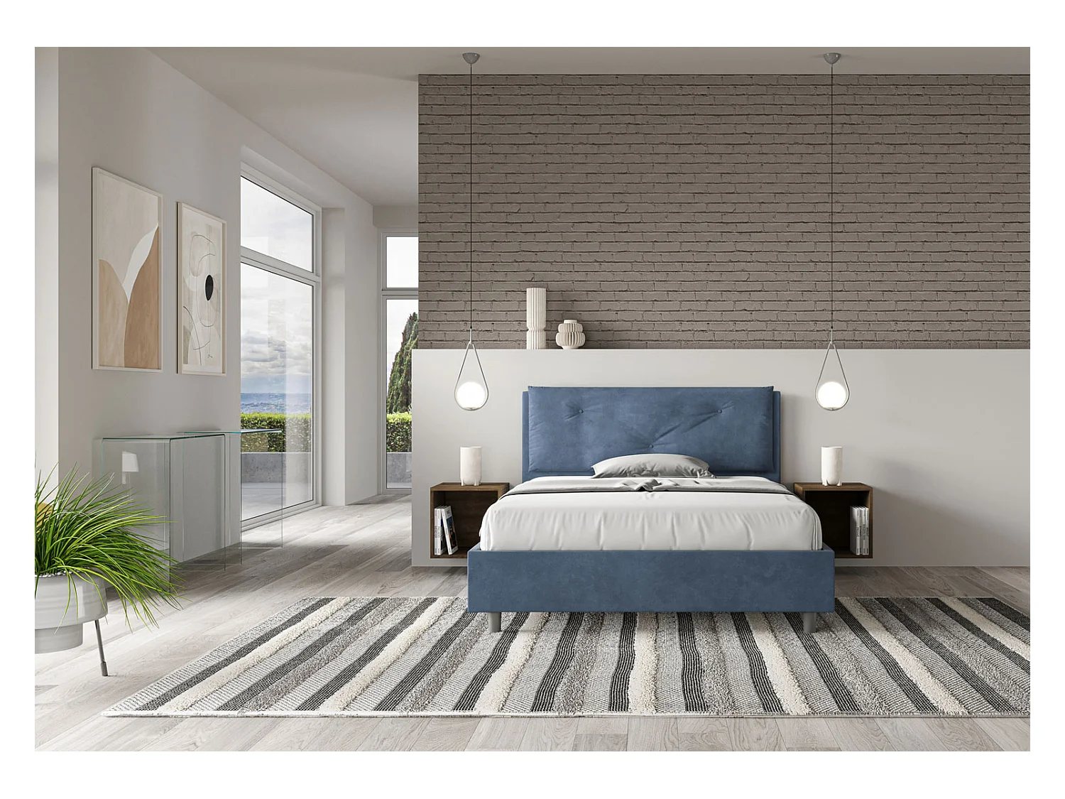 Gepolstertes Bett mit Bettkasten 140x200 mit Mikrofaserbezug Blau Appia Large