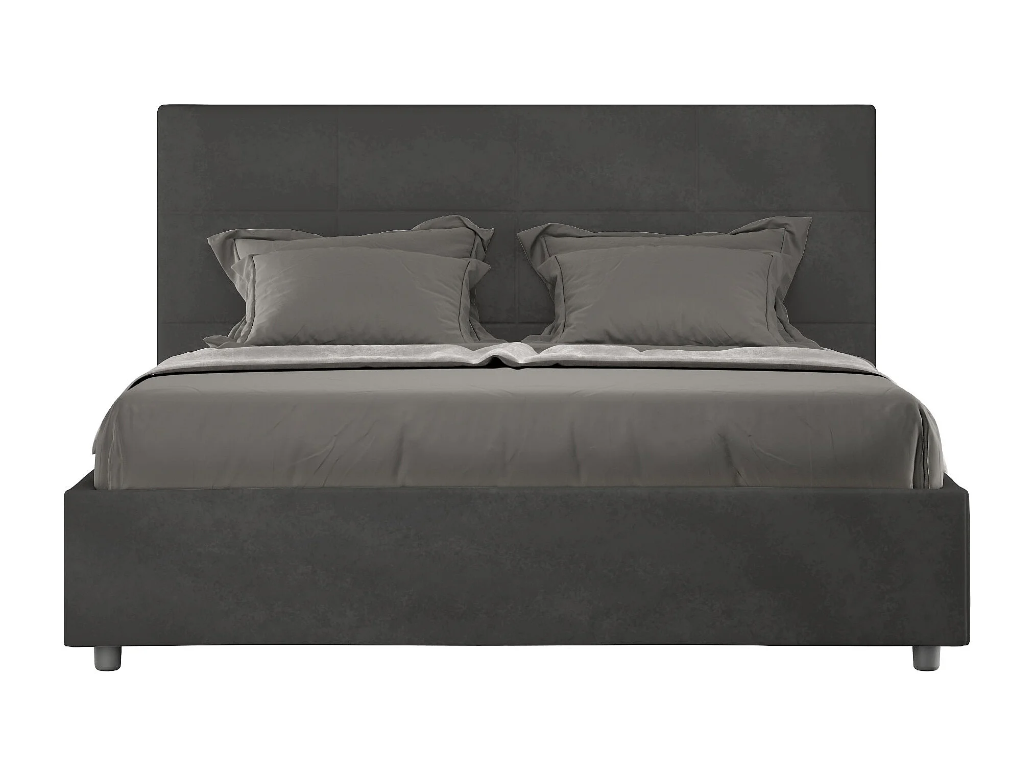 Gepolstertes Bett mit Bettkasten 140x200 mit Mikrofaserbezug Grau Mika