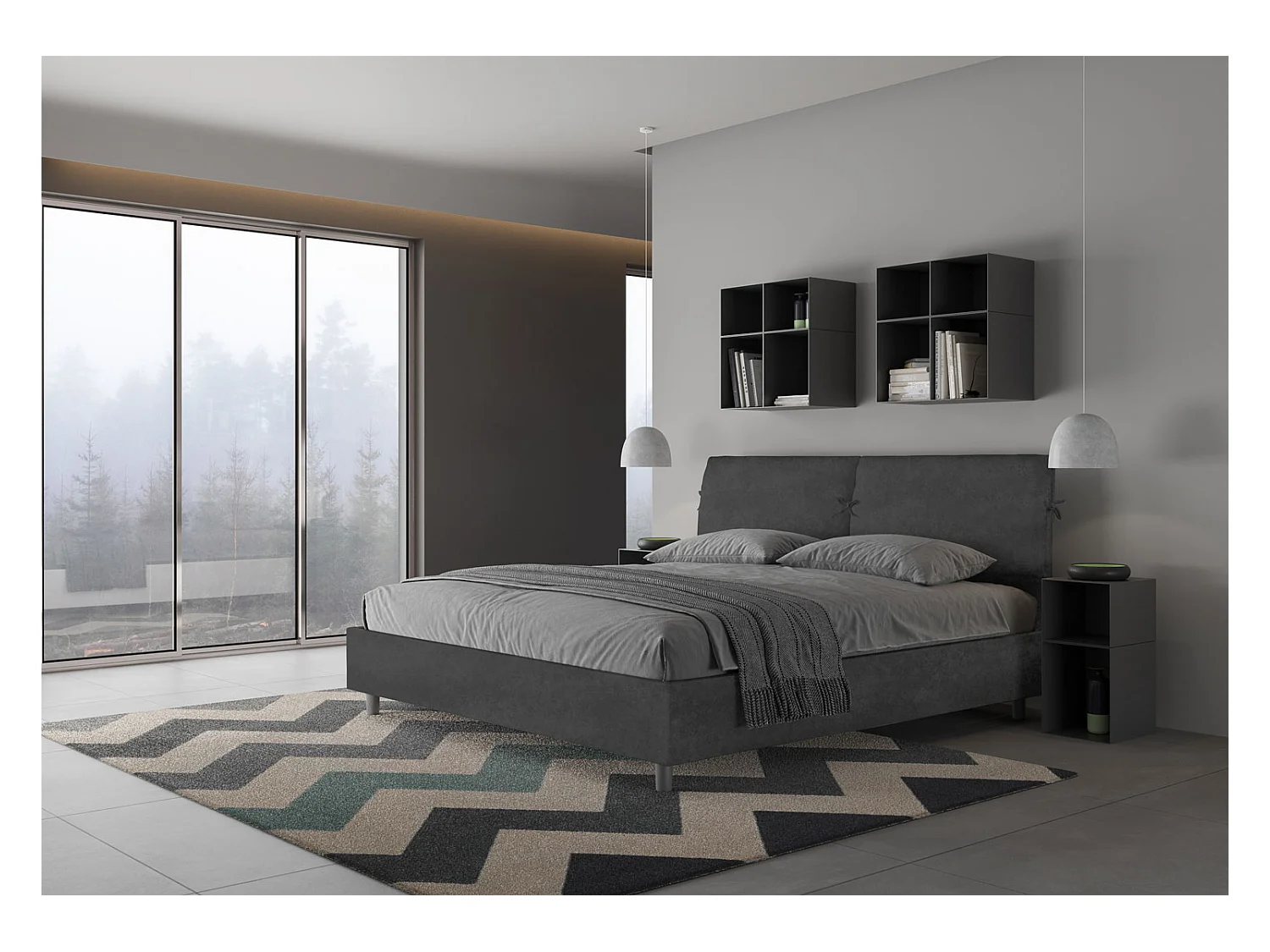 Gepolstertes Bett mit Bettkasten 180x200 mit Mikrofaserbezug Grau Mados