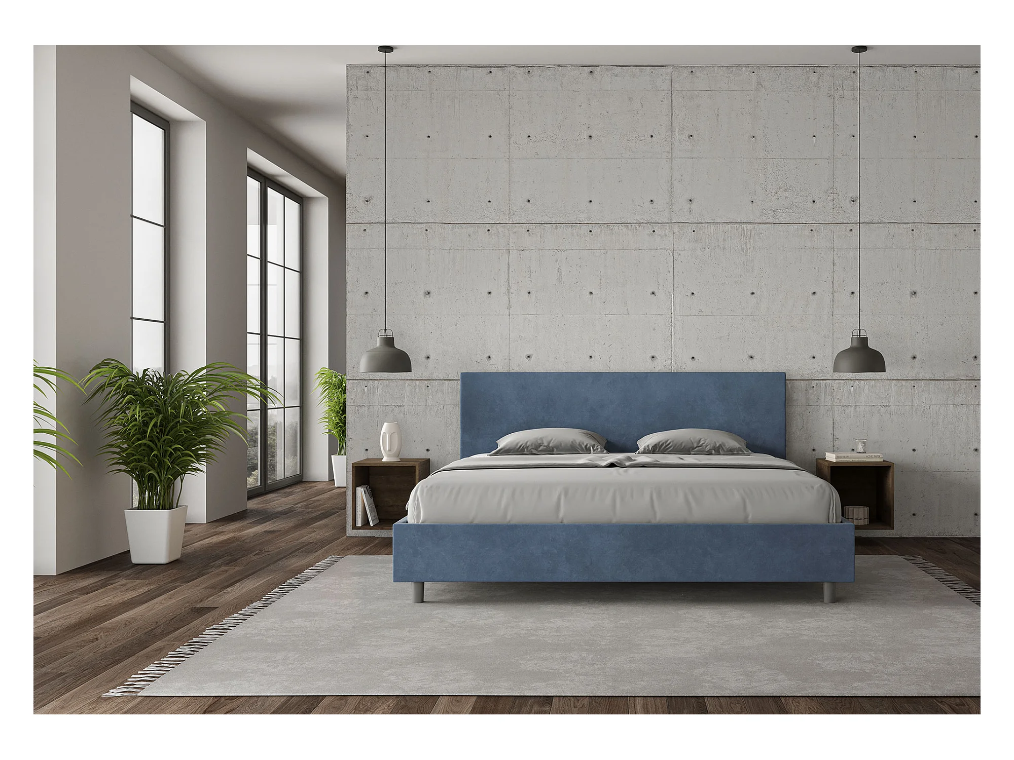Gepolstertes Stauraumbett Adele aus blauer Mikrofaser, 200 x 210