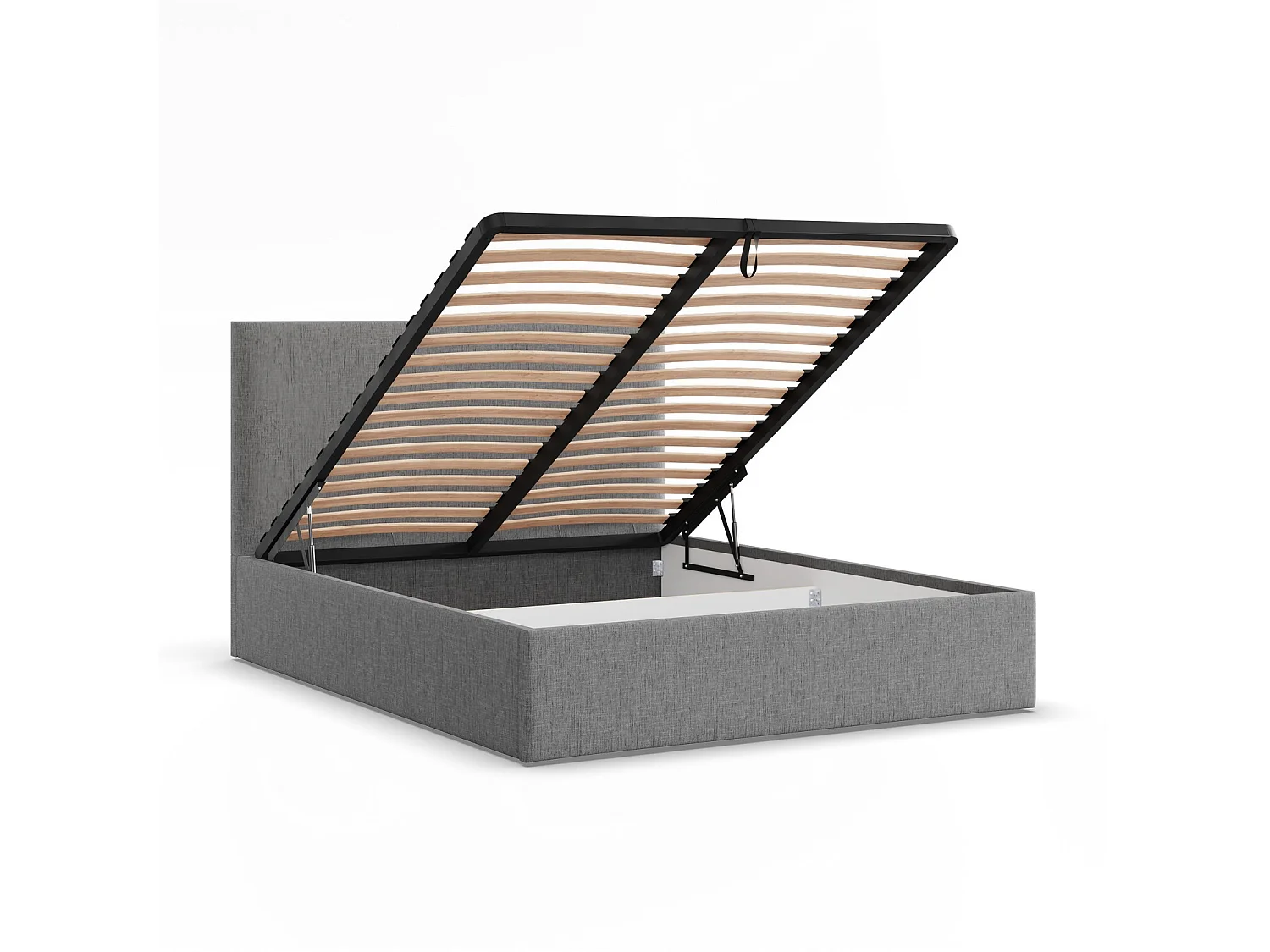 Gepolstertes Bett mit Kopfteil 160x200 cm, mit Bettkasten, Grau