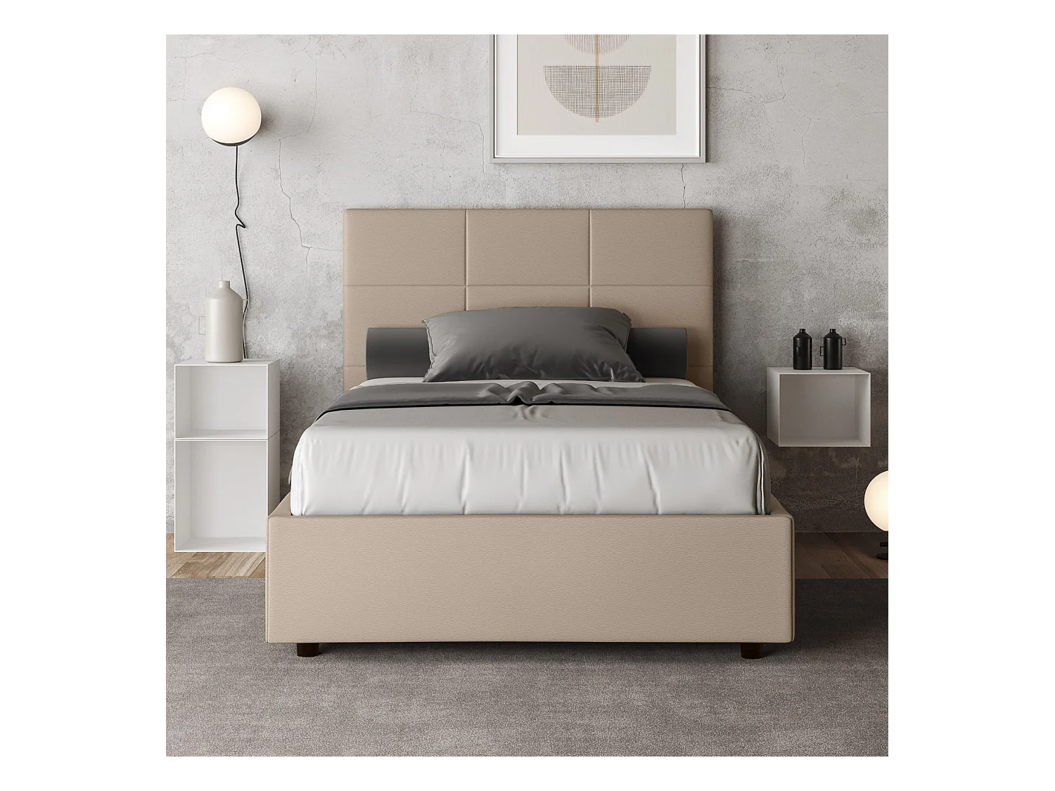 Mika taubengraues Kunstlederbett mit gepolsterter Basis 120x200