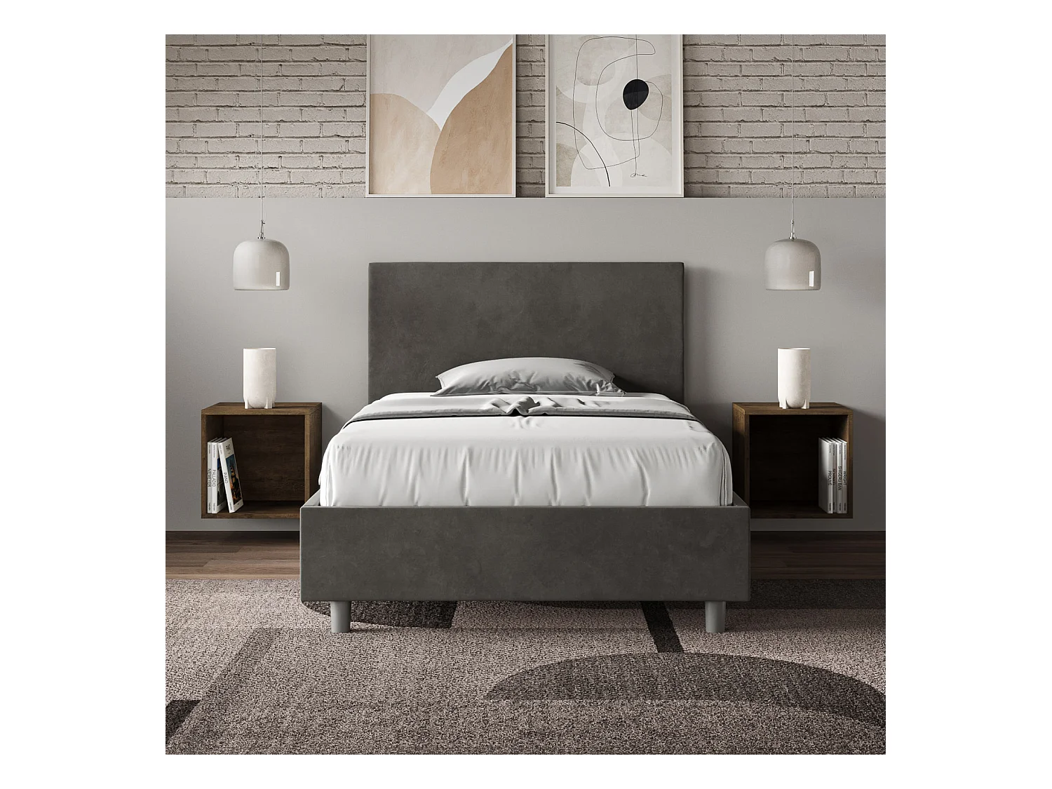 Adele graues Mikrofaserbett mit gepolstertem Untergestell 120x210