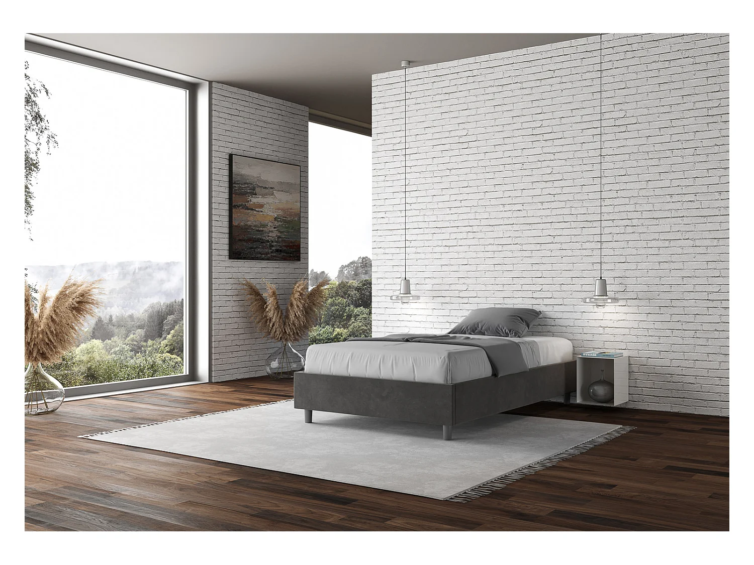 Sommier-Bett mit gepolstertem Untergestell 120x210 Azelia-grauer Mikrofaser