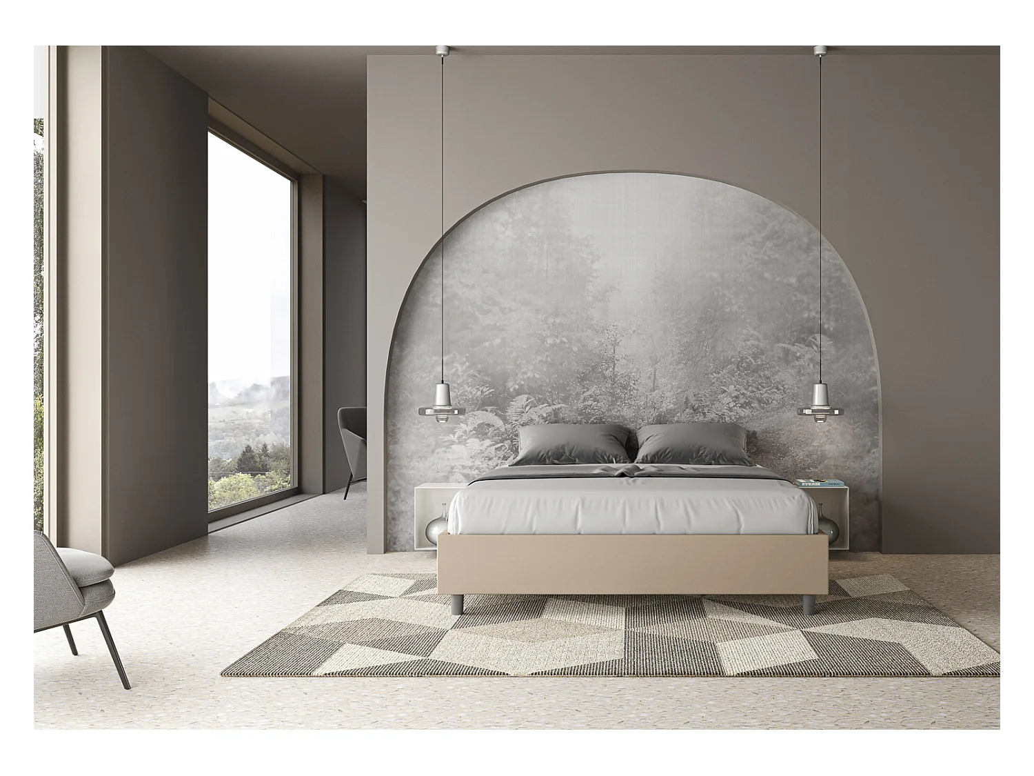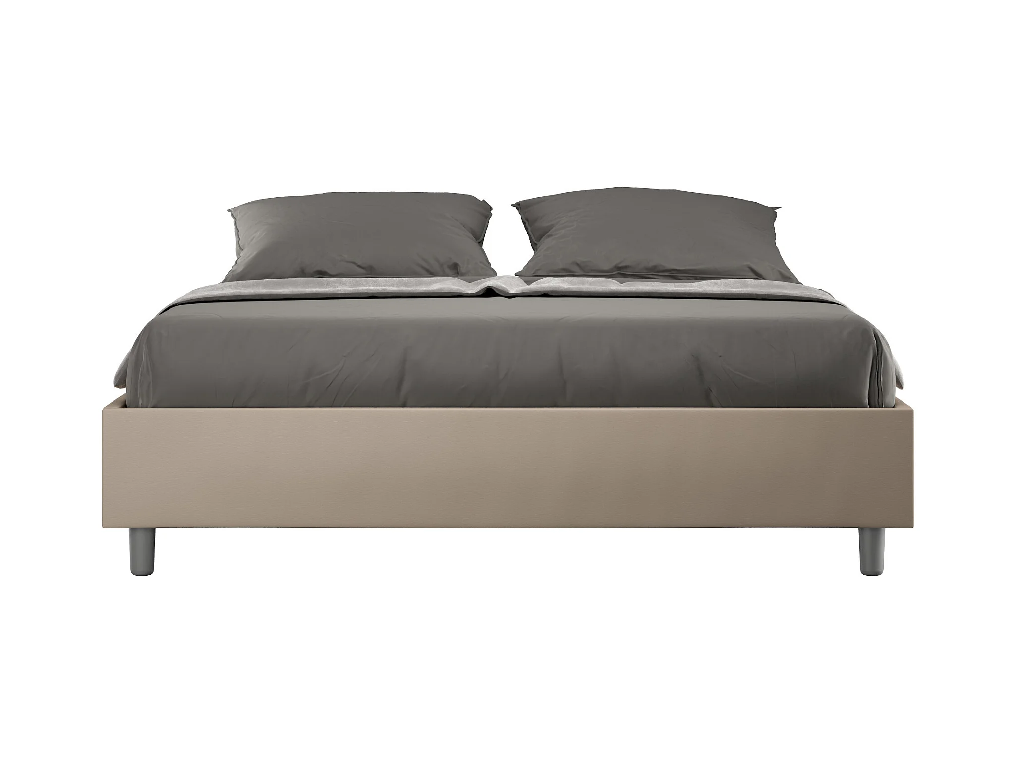 Sommier-Bett mit gepolstertem Untergestell 160 x 190 Azelia aus taubengrauem Kunstleder