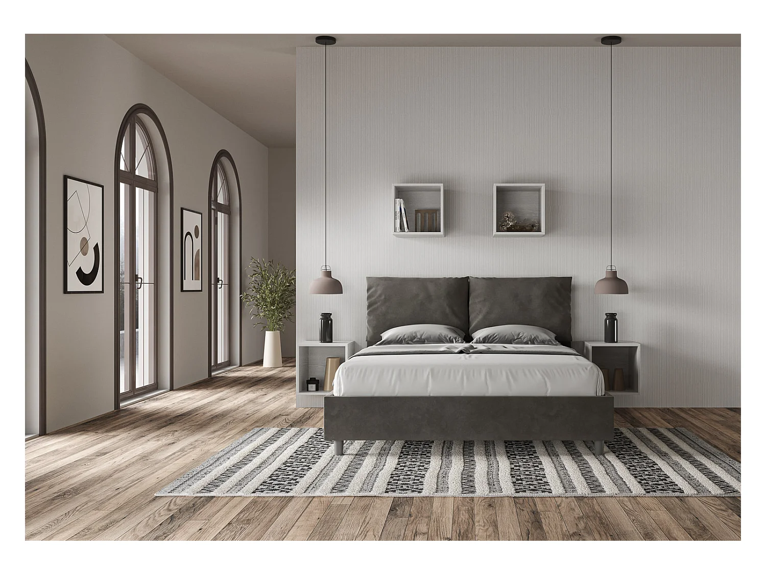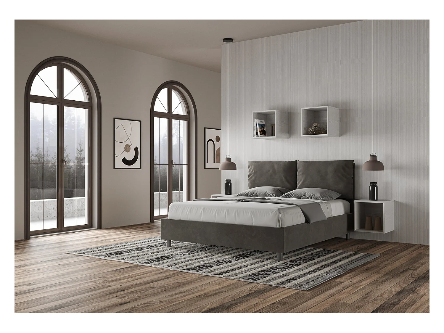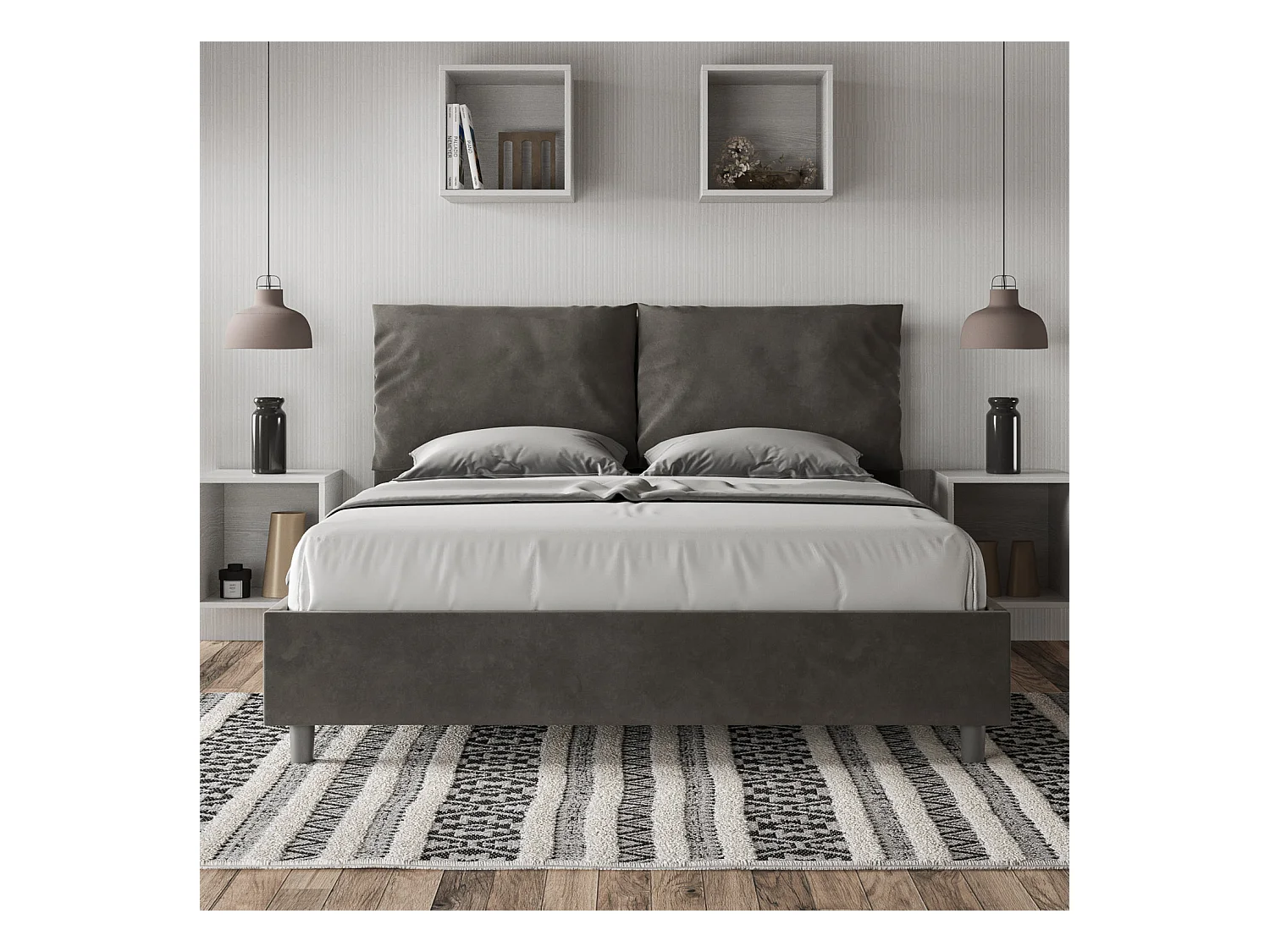 Antea graues Mikrofaserbett mit gepolsterter Basis 160x190