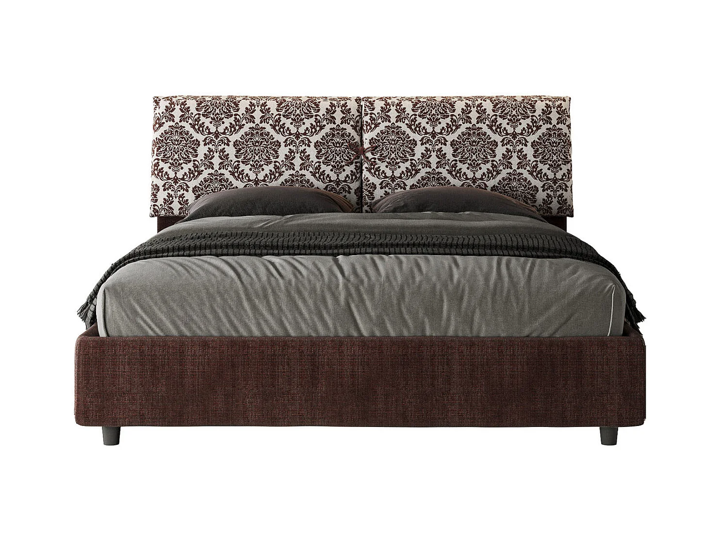 Bett mit gepolstertem Untergestell 160x190 aus Agata 4 burgunderfarbenem Mados-Stoff