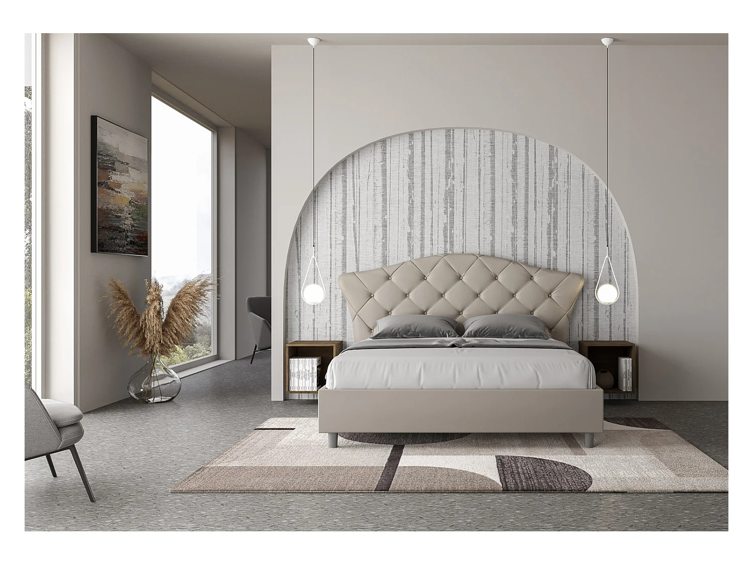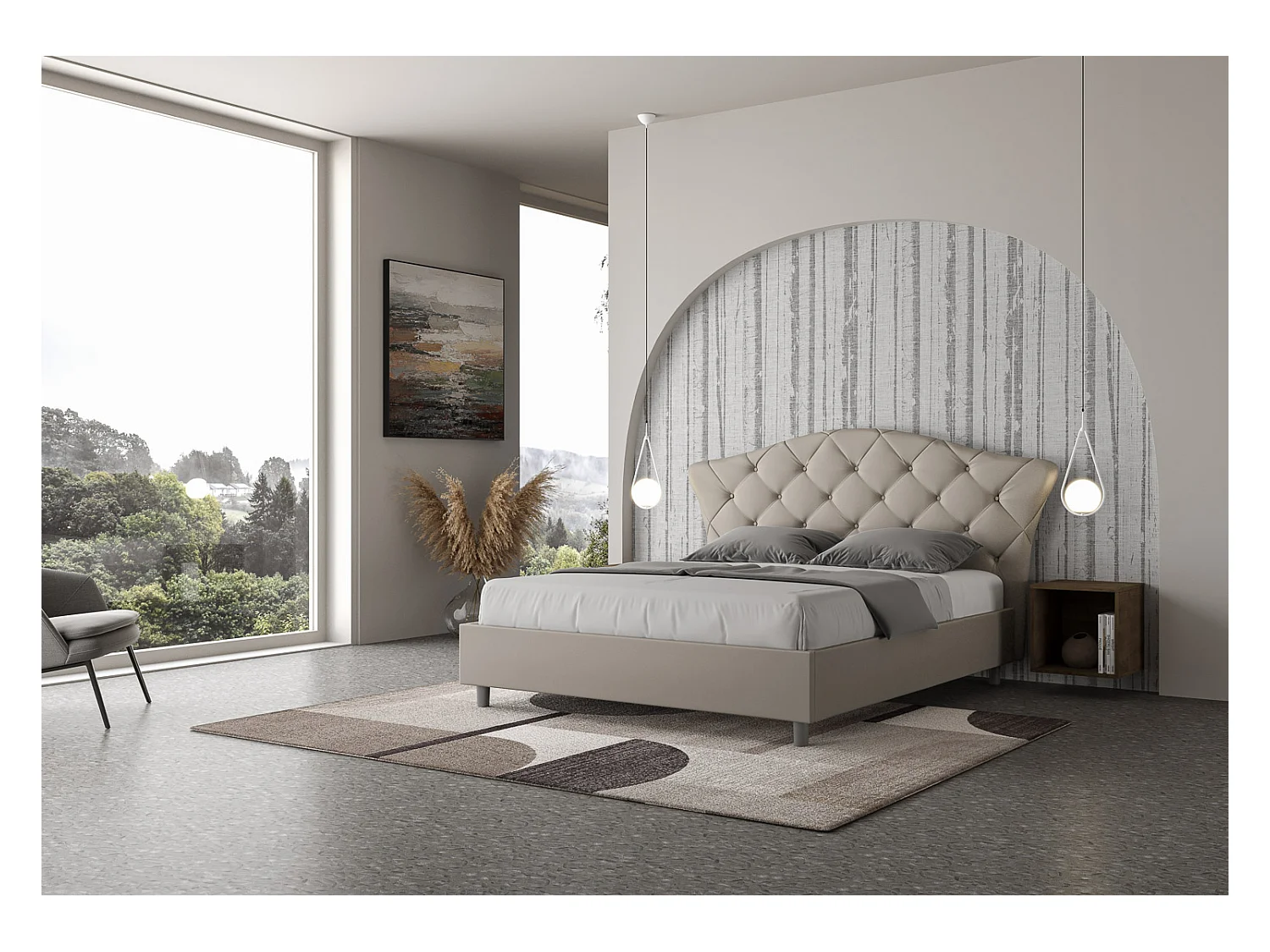 Gepolstertes Bett mit Lattenrost 160x200 mit Kunstlederbezug Taubengrau Langre