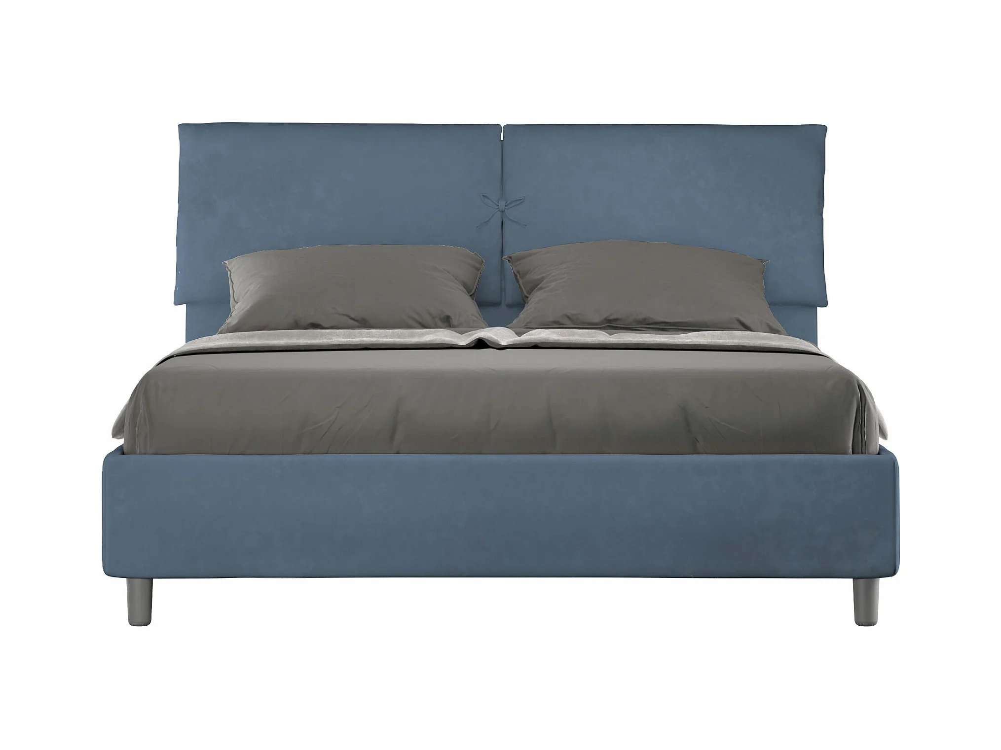 Blaues Mikrofaserbett Mados mit gepolsterter Basis 160x200