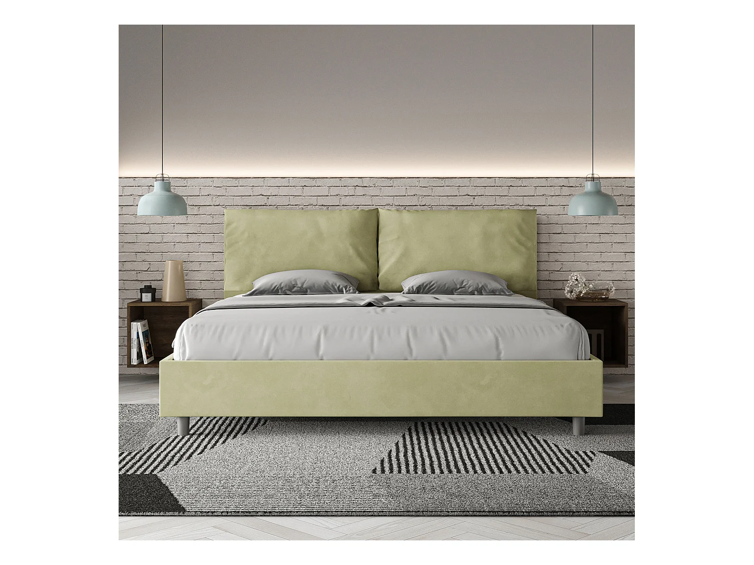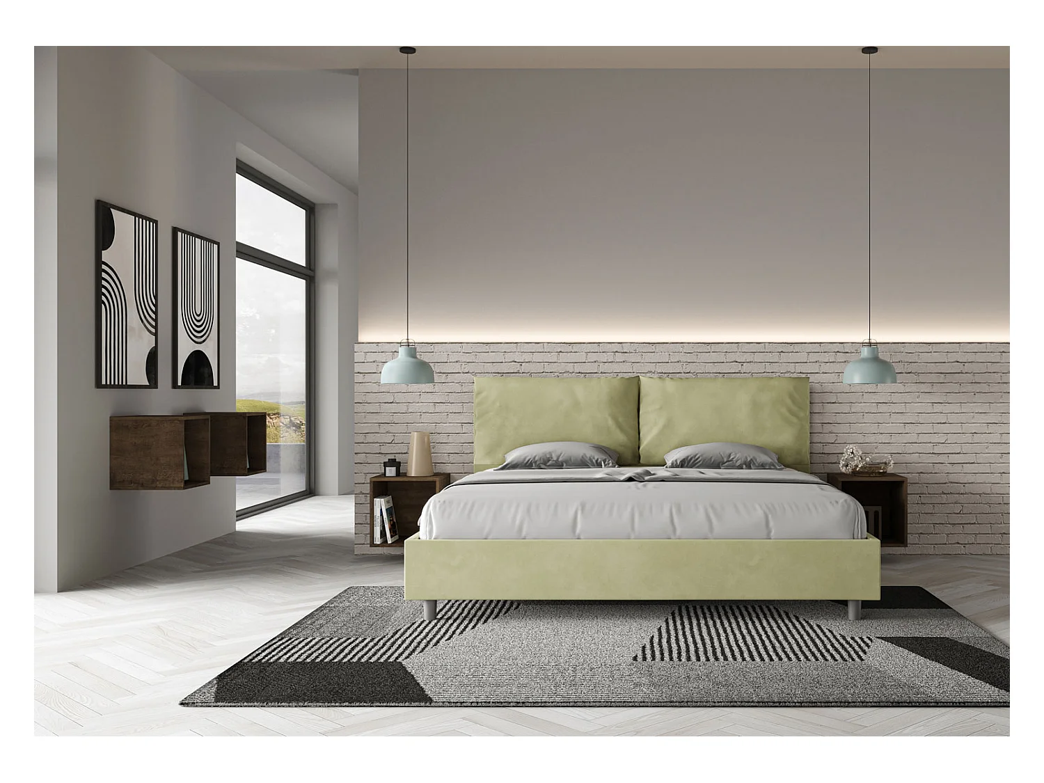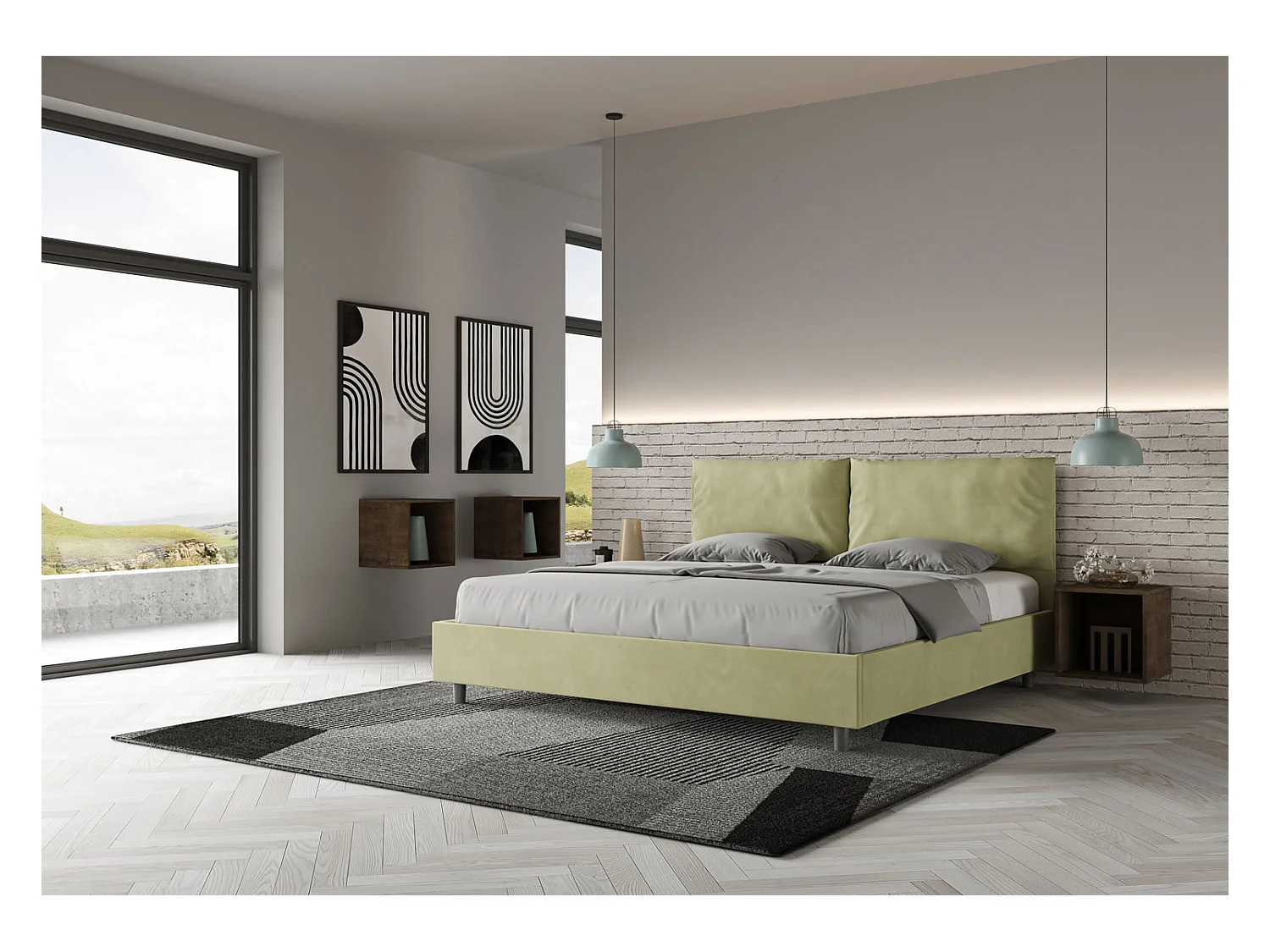 Gepolstertes Bett mit Lattenrost 200x200 mit Mikrofaserbezug Grün Antea Large