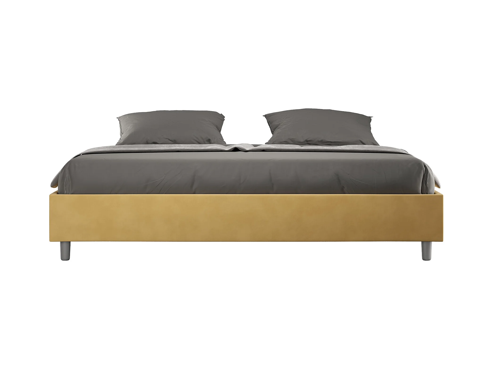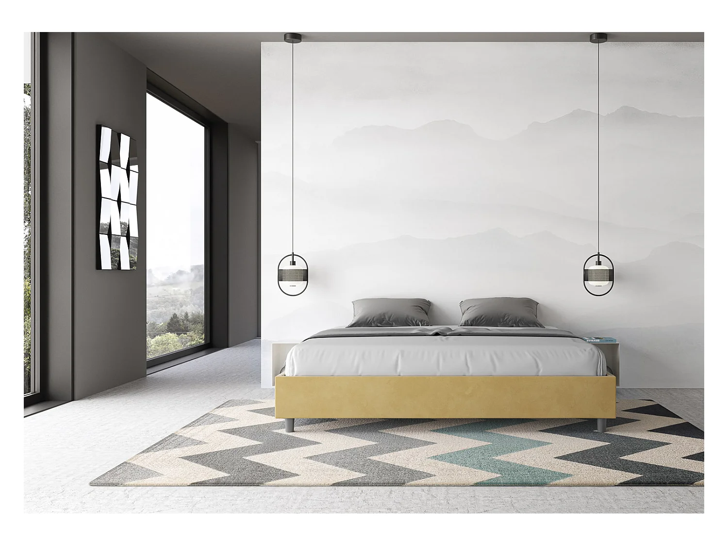 Sommier-Bett mit gepolstertem Untergestell 200x210 aus ockerfarbener Azelia-Mikrofaser