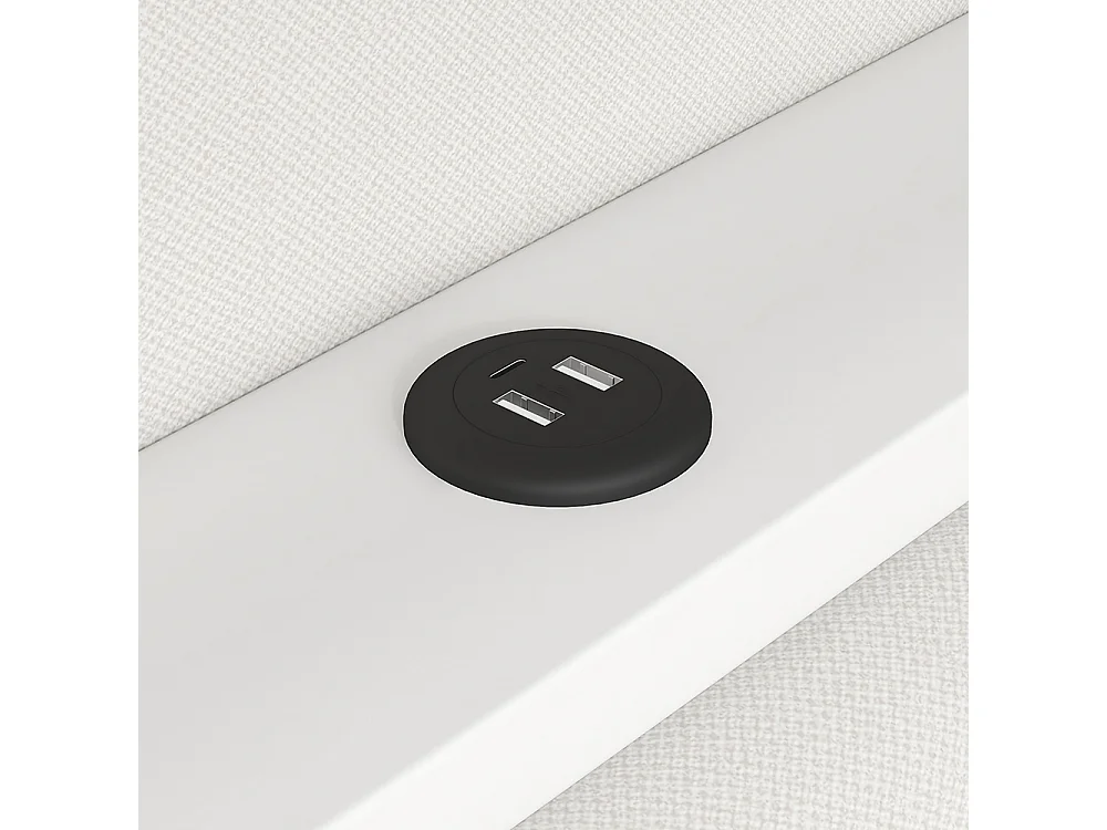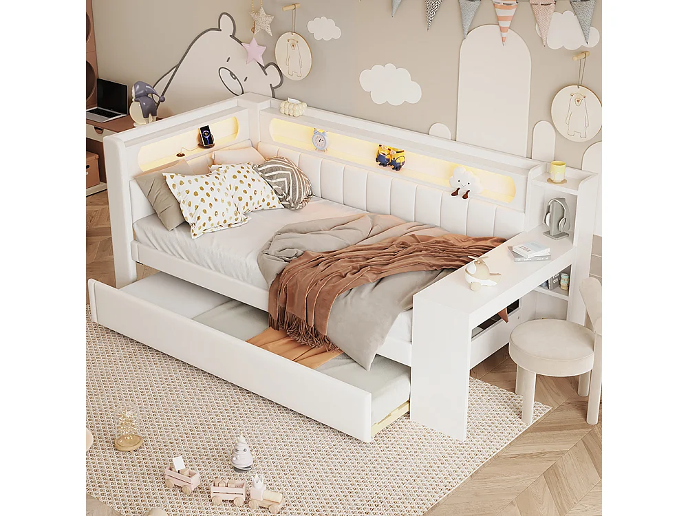 Gepolstertes Bett mit LED-Beleuchtung, 90x200cm, weiß.