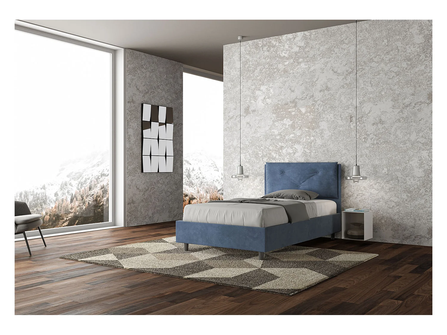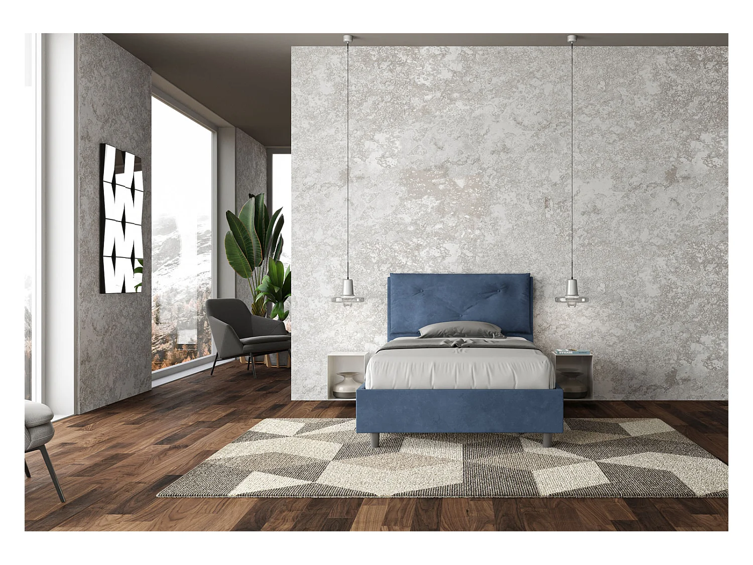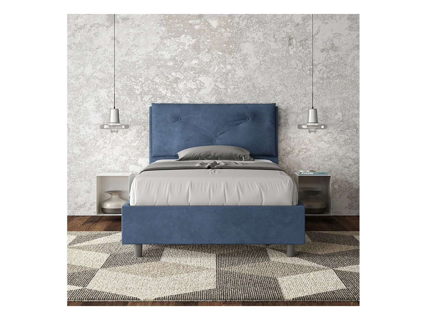 Gepolstertes Bett ohne Lattenrost 120x190 mit Mikrofaserbezug Blau Appia Large