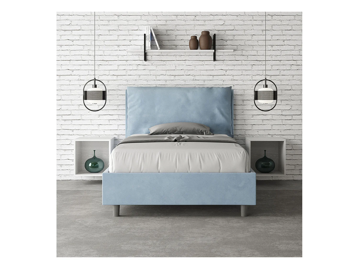 Gepolstertes Bett ohne Lattenrost 120x190 mit Mikrofaserbezug Himmelblau Antea Large