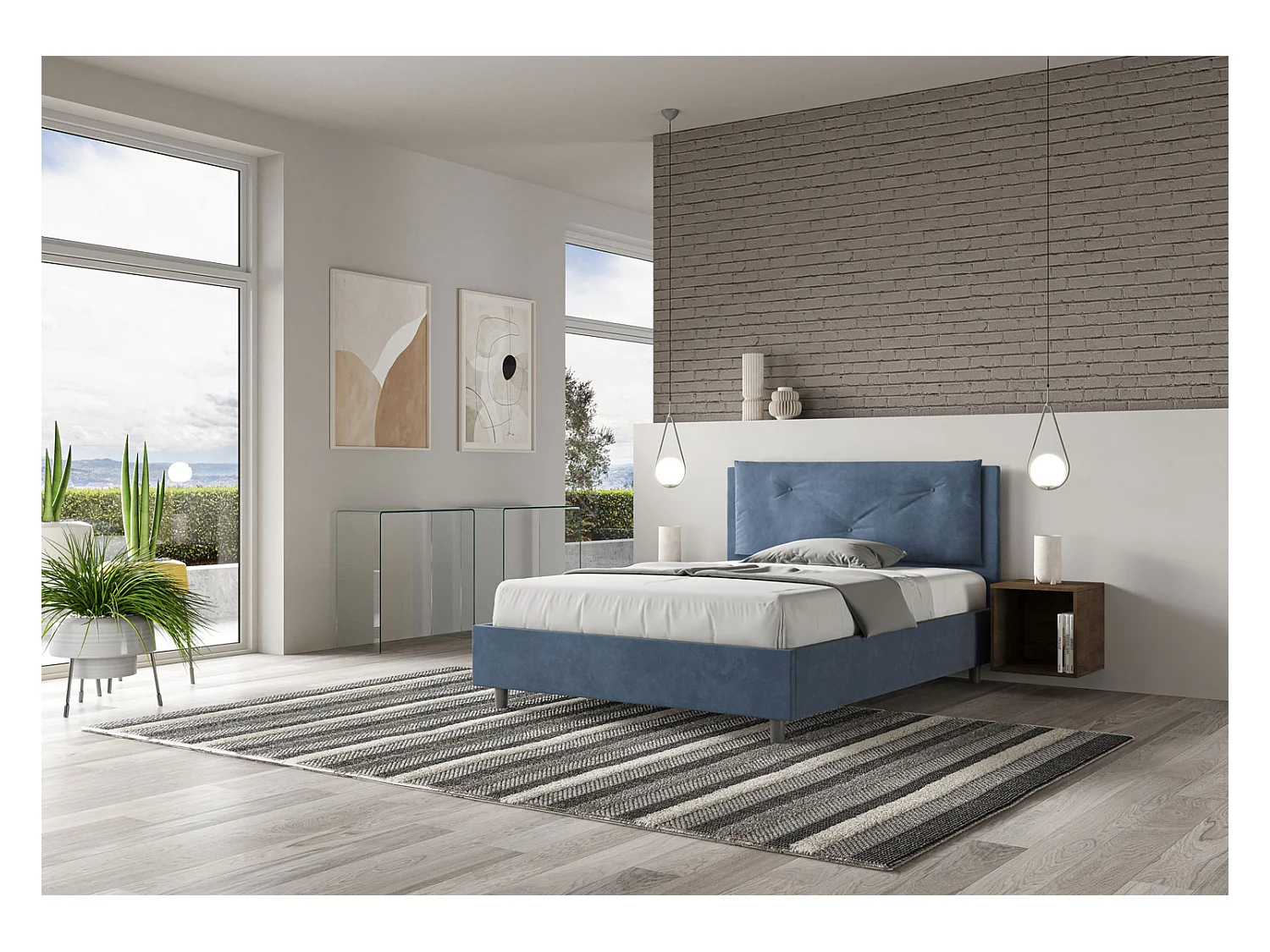 Gepolstertes Bett ohne Lattenrost 140x210 mit Mikrofaserbezug Blau Appia Large