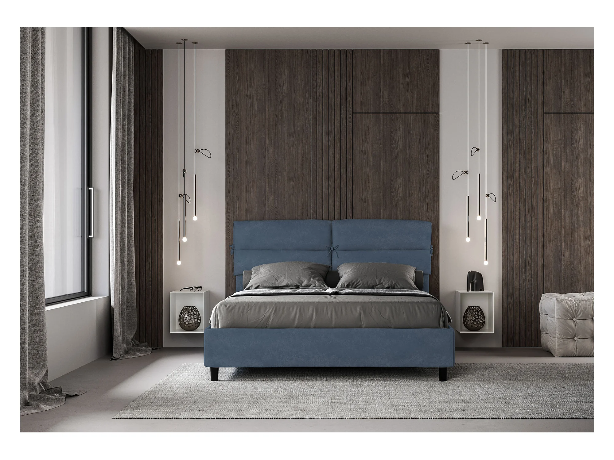 Nandy blaues Mikrofaser-Polsterbett ohne Untergestell 160x210