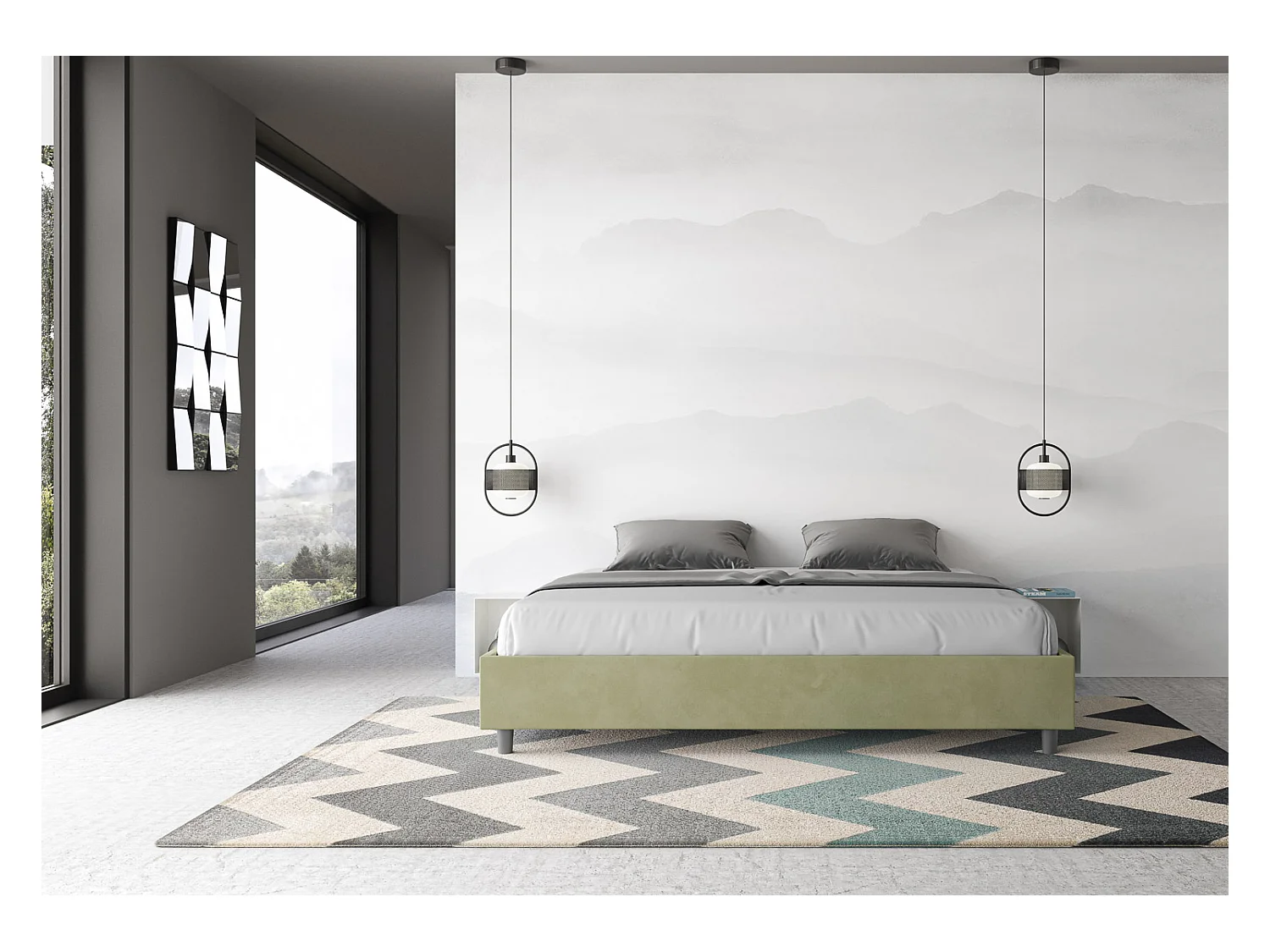 Sommier-Bett ohne Untergestell, gepolstert, 200 x 200 cm, grüner Tee, Mikrofaser Azelia