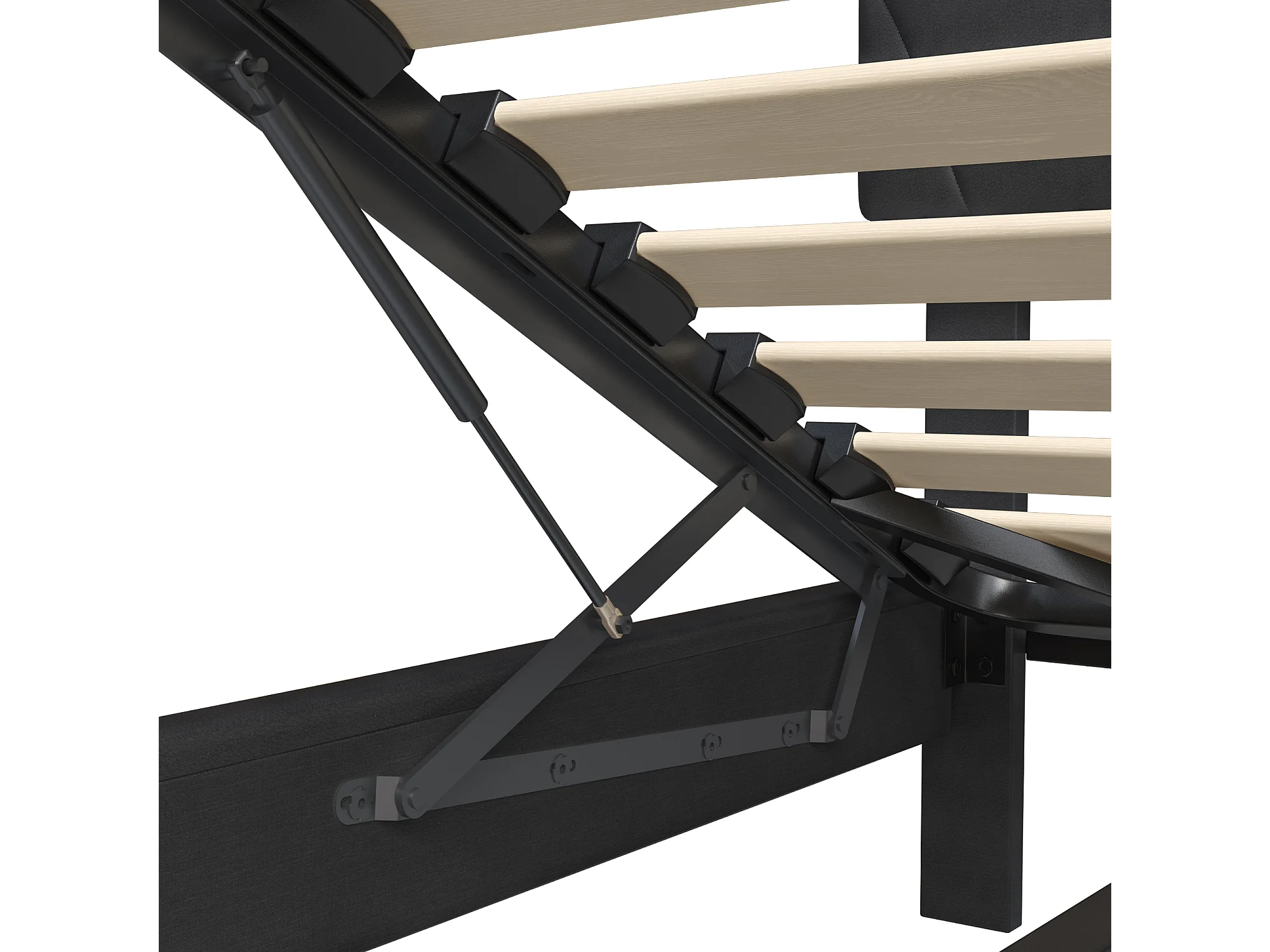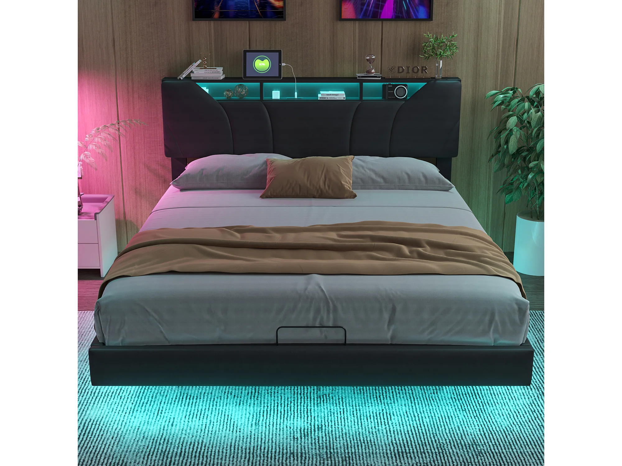 Gepolstertes Doppelbett 160 x 200 cm – mit USB- und LED-Licht – Bettgestell mit Kopfteil und Bettkasten, aus PU – Grau