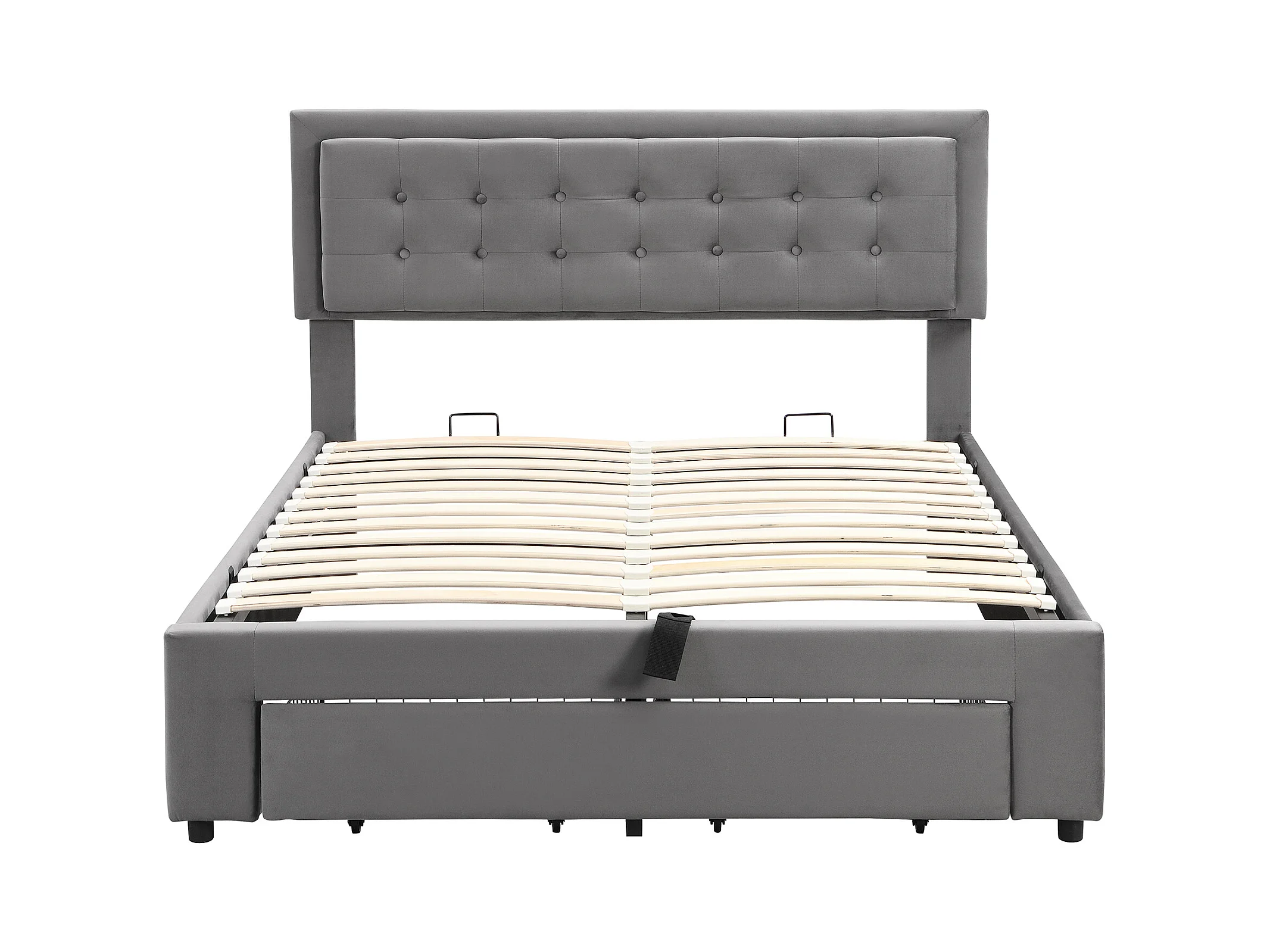 Gepolstertes Stauraumbett 140 x 190 cm aus Samt – mit Schublade und Lattenrost – Grau (ohne Matratze)