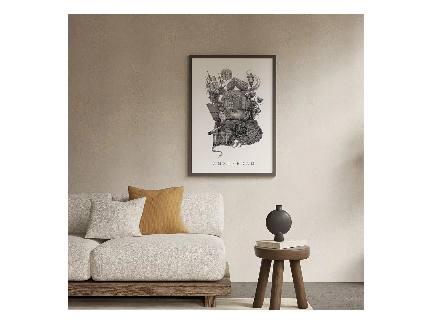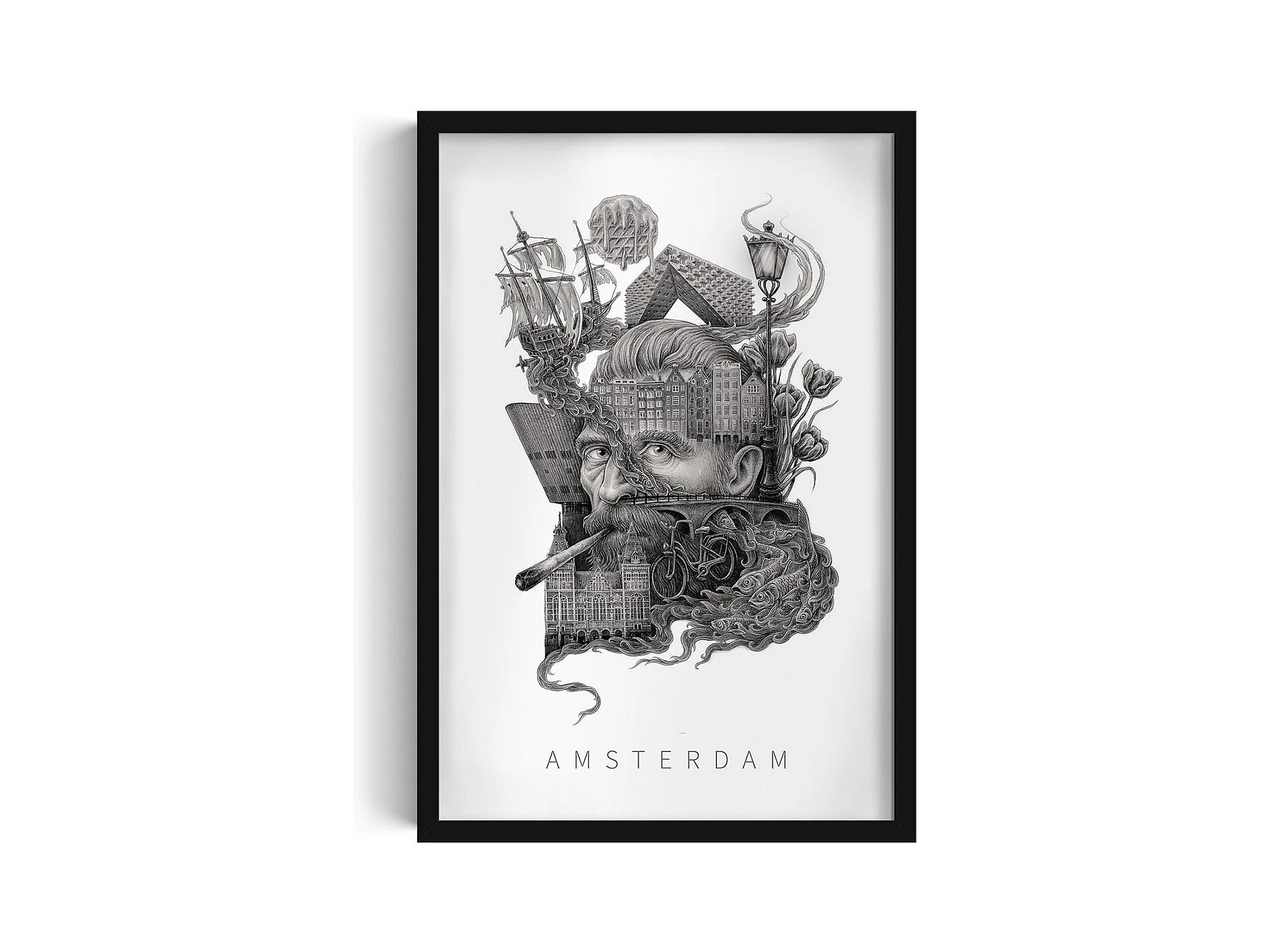 Gerahmtes Bild, elegantes niederländisches Dekor, schwarzer Rahmen der Amsterdamer Kunst, 40x60 cm großes Amsterdamer Stadtbild.